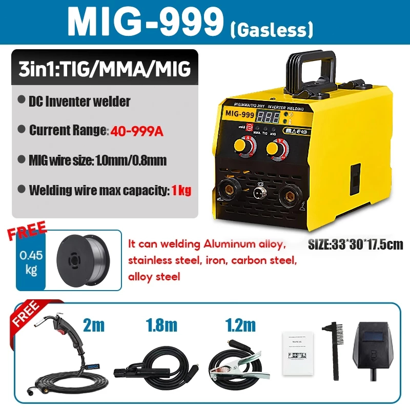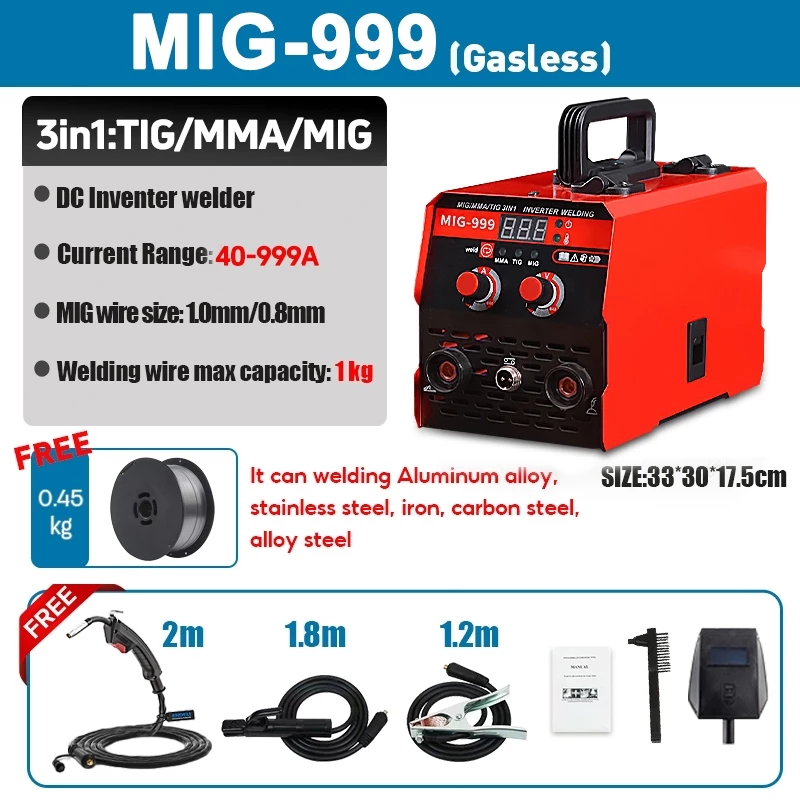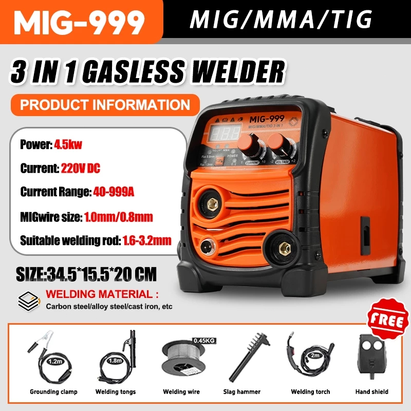 Portable MIG Welding Machine Home High Quality Inverter Arc Welder MIG-999 3 IN1 Gasless Welder