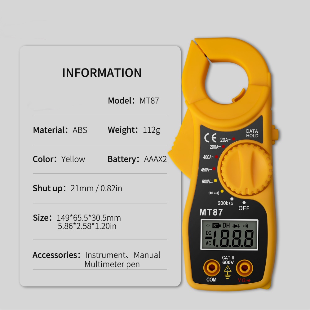 Portable MT87 Digital Clamp Ammeter Multimeter With Measurement AC/DC Voltage Tester Resistance Mult