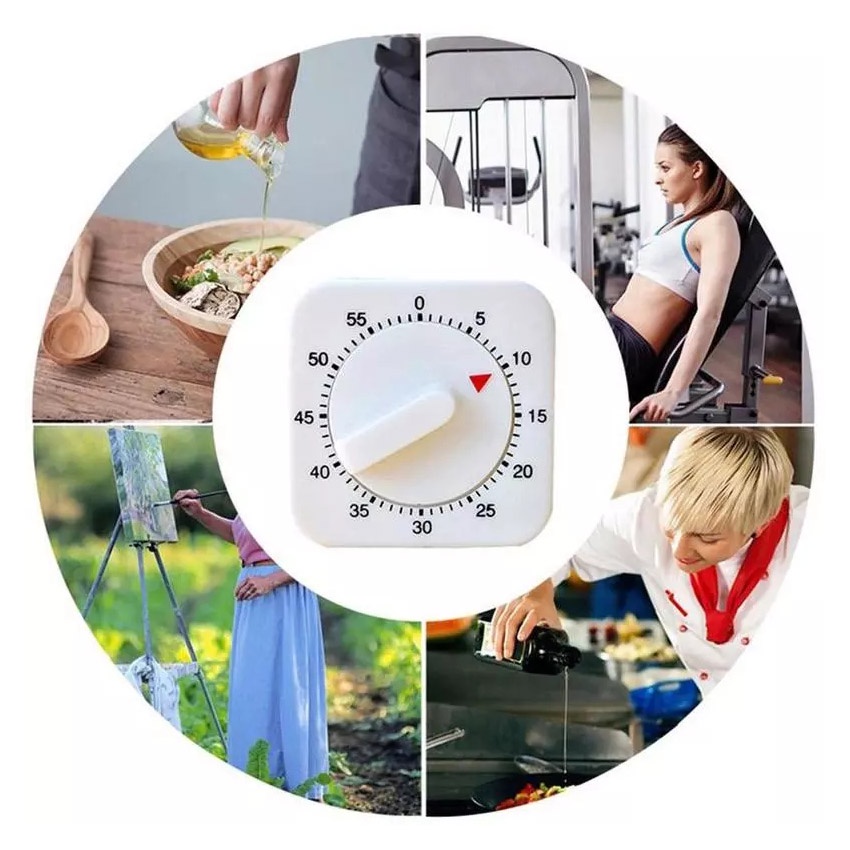 Portable Minutes Kitchen Timer Count Down Alarm Reminder White Square Mechanical Timer for Kitchen