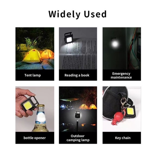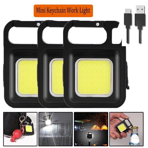 Portable Multifunctional Mini Keychain Outdoor Camping Lamp LED Light USB Rechargeable COB Work Lamp