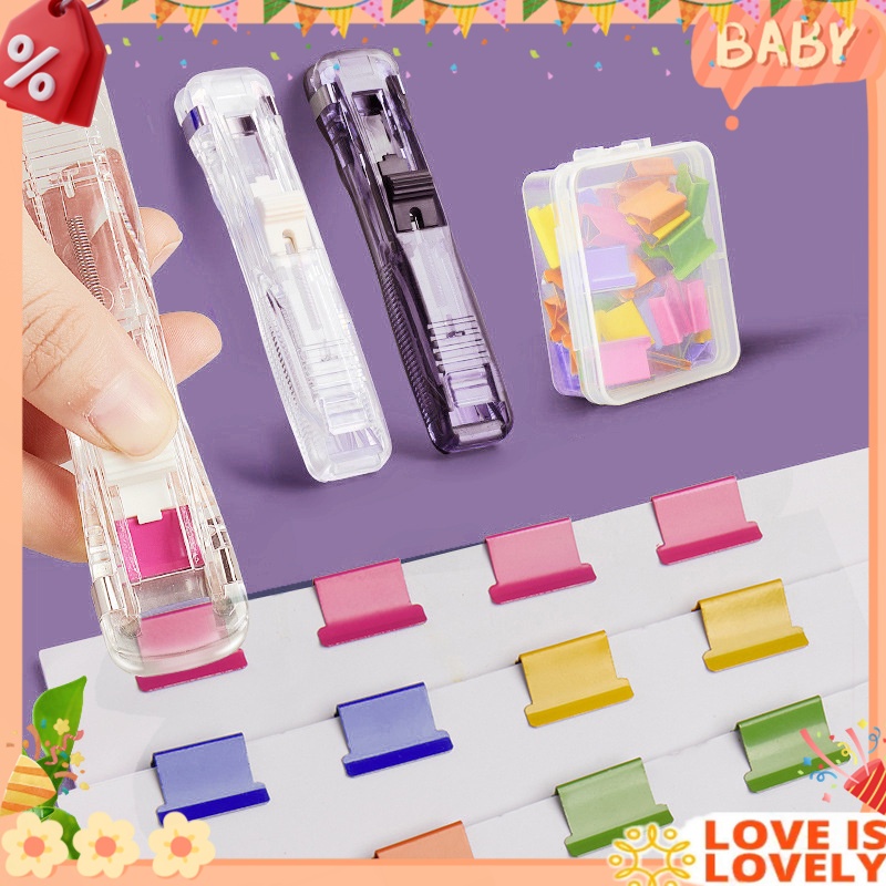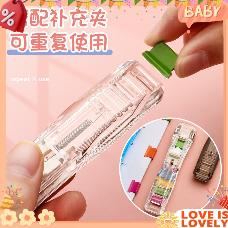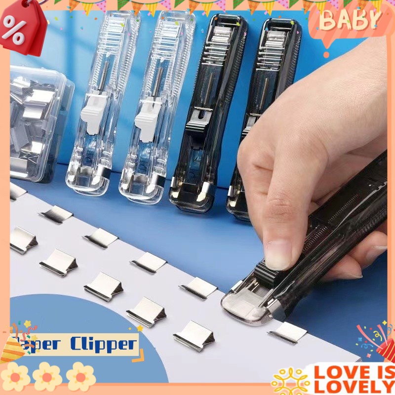 Portable Push Clamp Handheld Push Clip Exam Paper Clipper Reusable Folder Stapler school Supplies