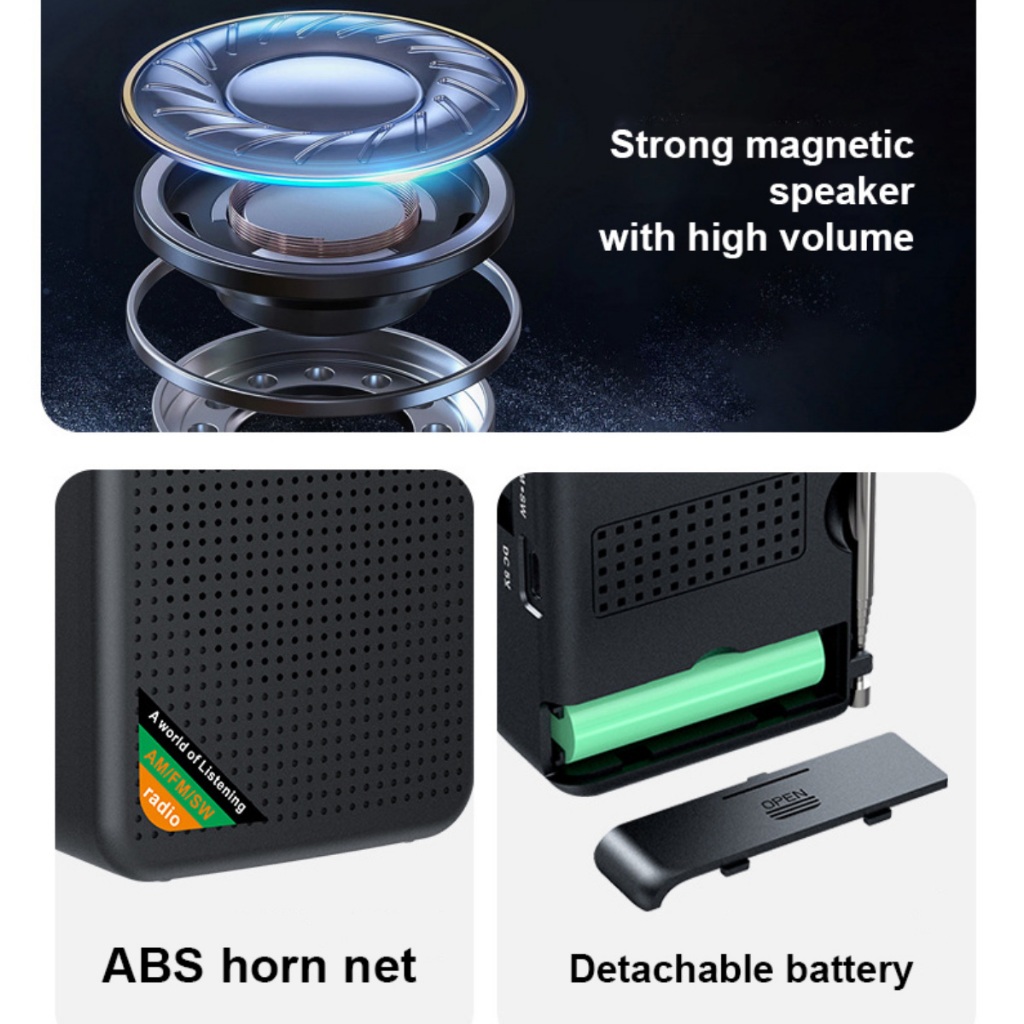 Portable Radio FM AM SW Radio, Type-C Rechargeable HD Display Screen Battery Operated Radio