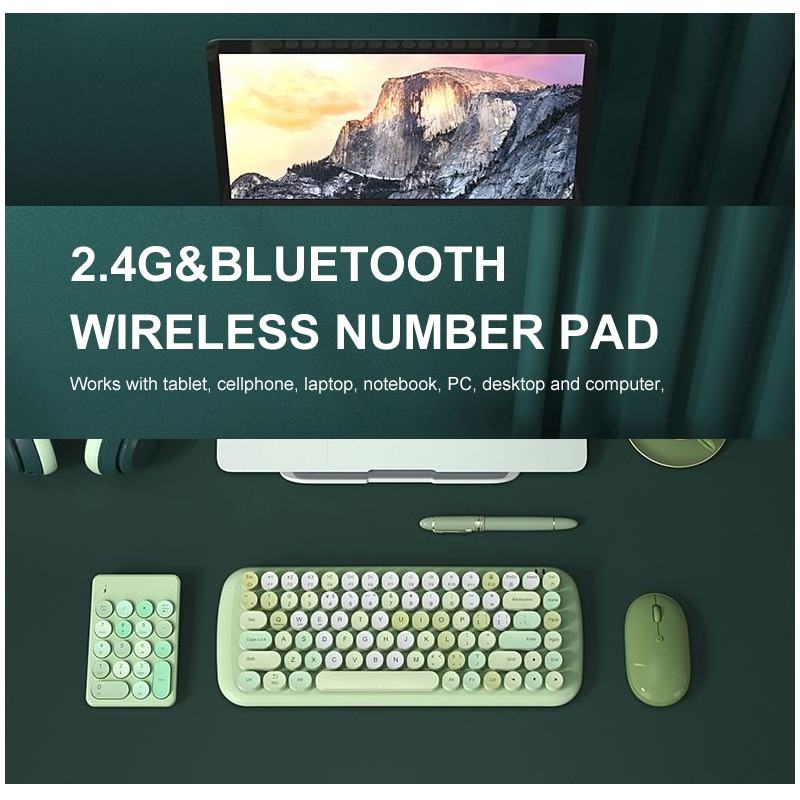 Portable Slim numeric Keypad, 18 Round Keys Bluetooth Wireless USB NumericKeypad Cute wireless bluetooth digital keyboard Cute Macaron Pink mouse Keyboard Bluetooth keypad apple laptops checkout financial accounting compute