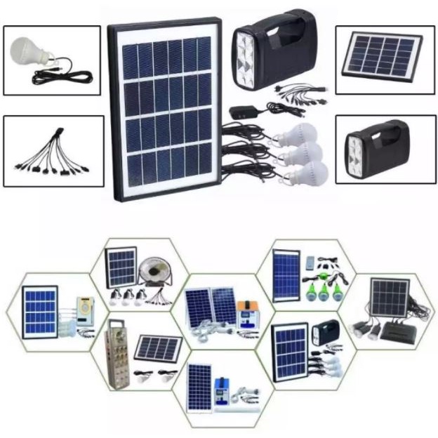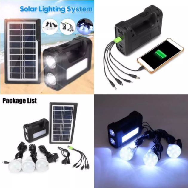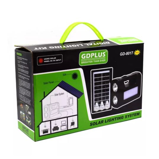 Portable Solar Lighting System GD Plus GD-8017 COB with 3 Bulbs Mobile Charging Camping Light