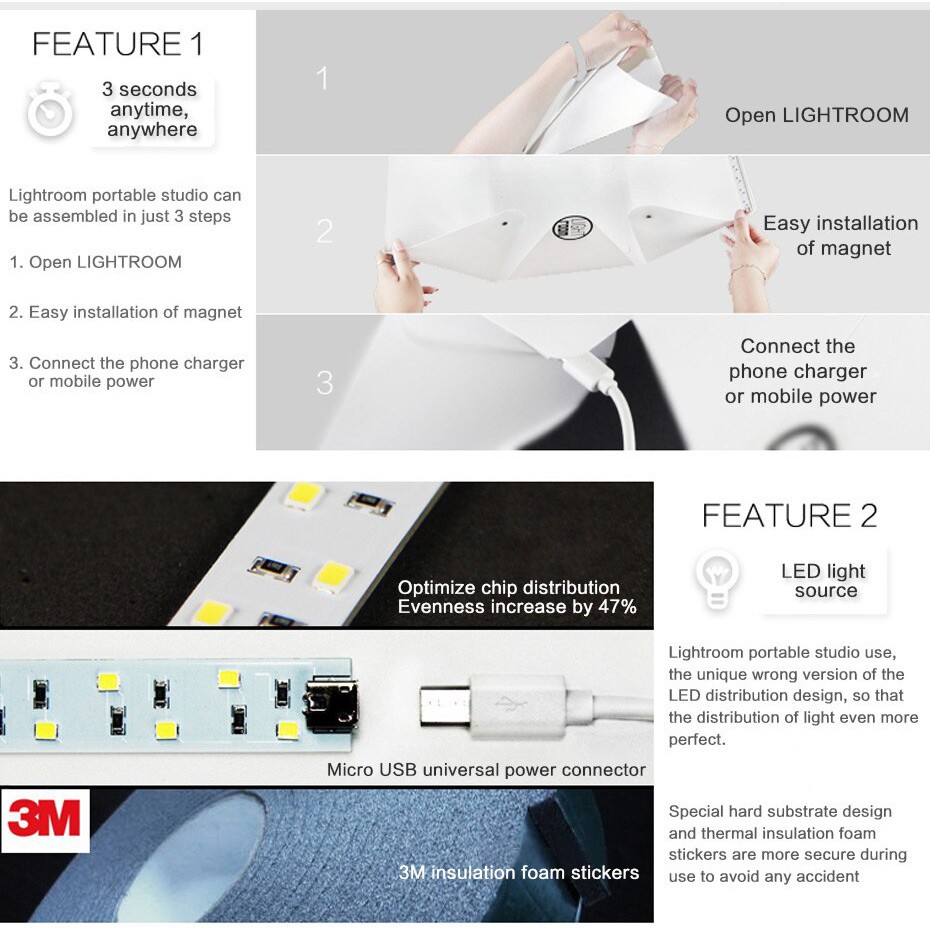 Portable Studio Box - Mini Photo Studio Light Box LED Lights Room Photography Folding Detachable