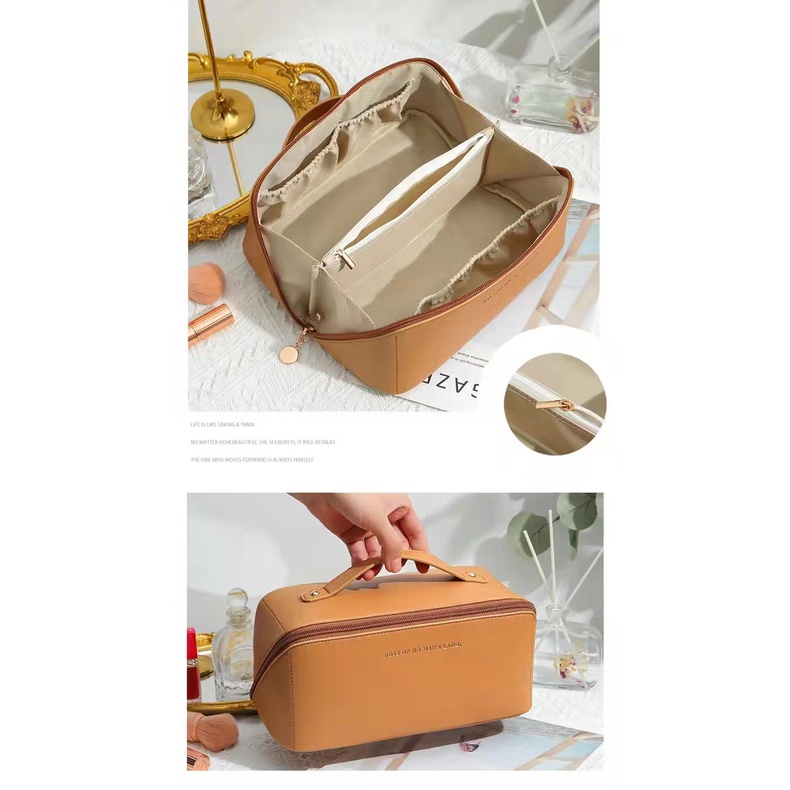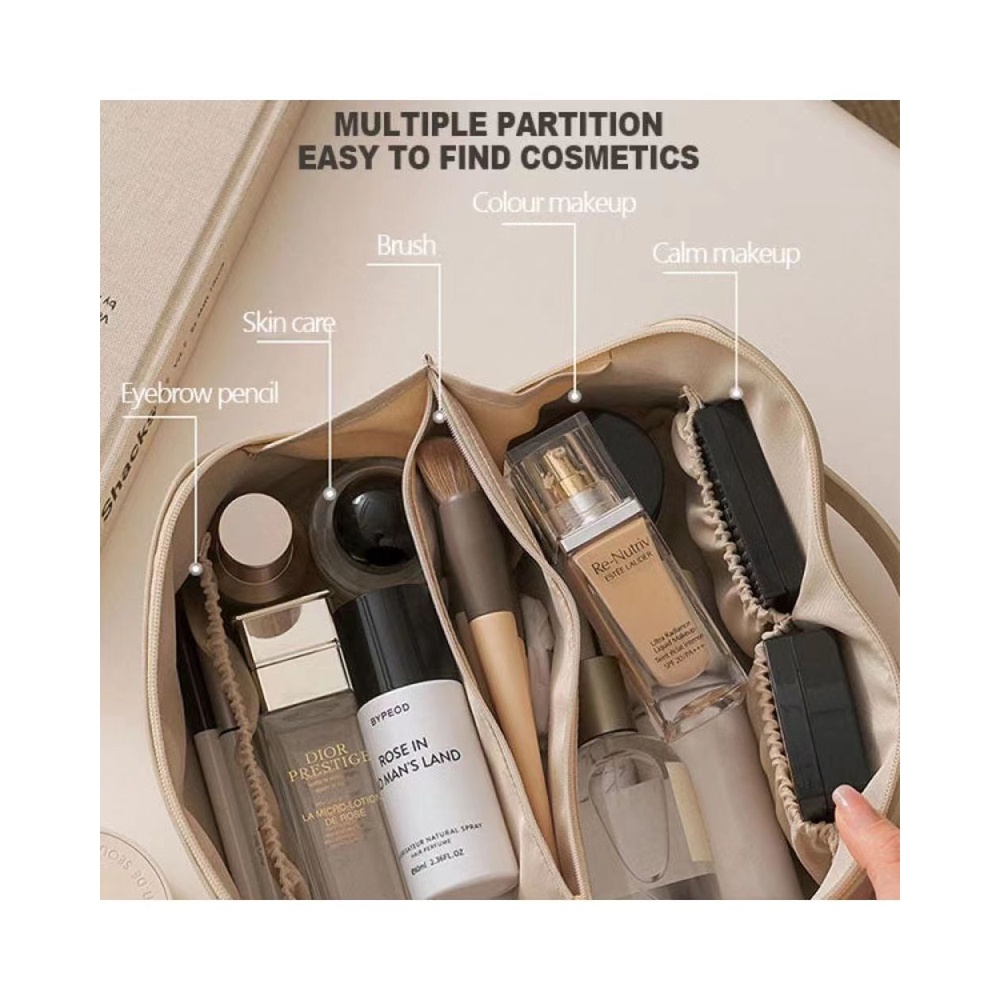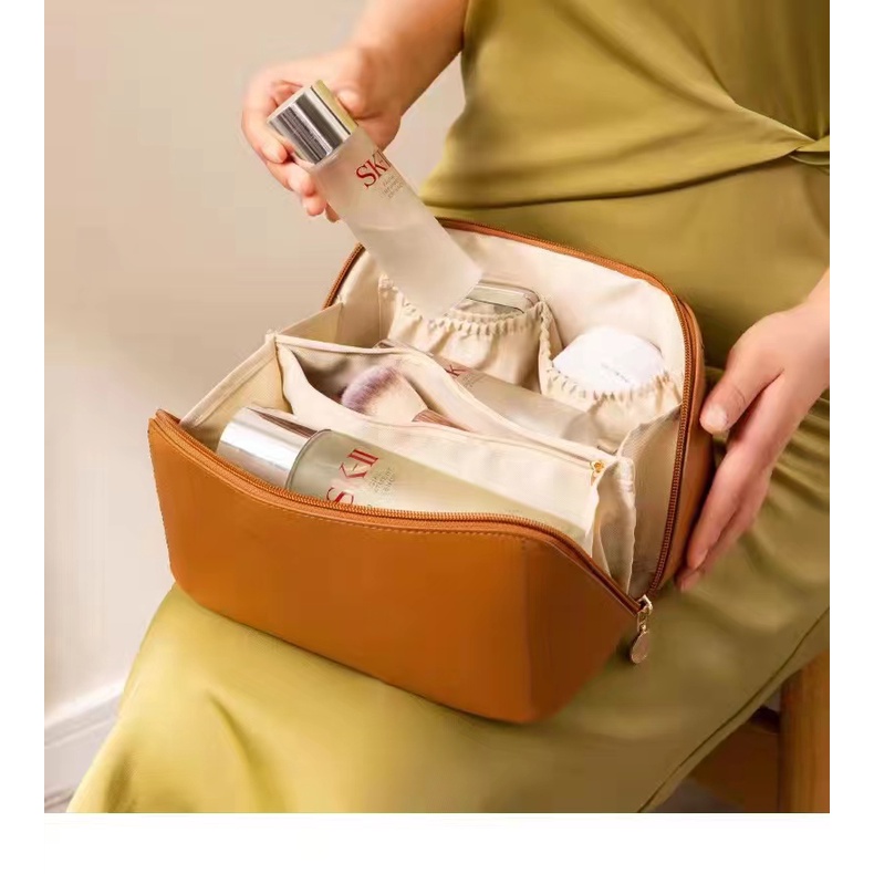 Portable Travel Makeup Pouch Organizer Multifunctional Leather Travel Cosmetic Pouch