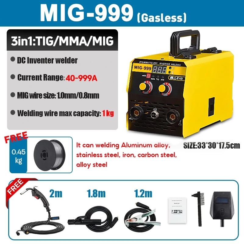Portable Welding Machine MIG/TIG/MMA 3IN1 Gasless Welder IGBT DC Inverter Welding Machine