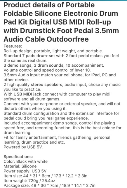 Portable drum pad kit electronic electric audio set gift / silicone / with foot pedal / no speaker