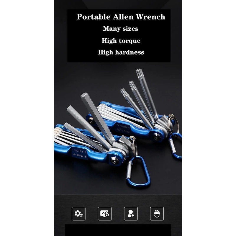 Portable folding hexagonal wrench, multifunctional flat head metric hexagonal torx screwdriver combination tool set