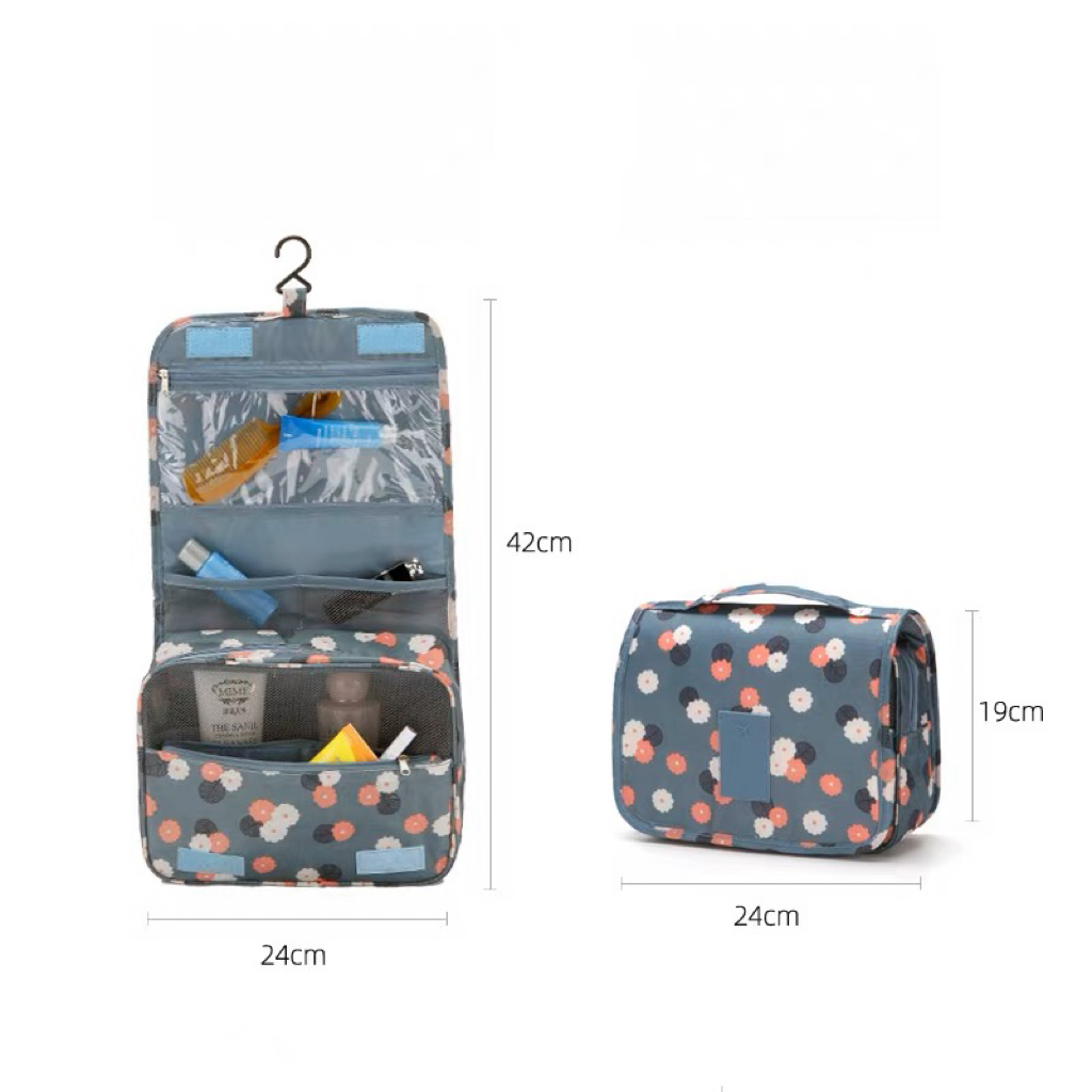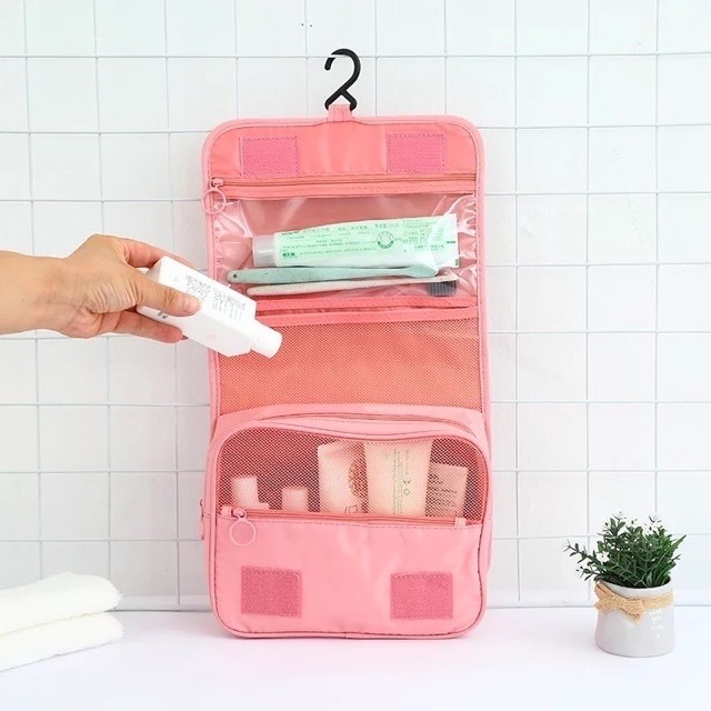 Portable hanging toiletries storage organizer travel friendly bag pouch organizing stuffs makeup etc