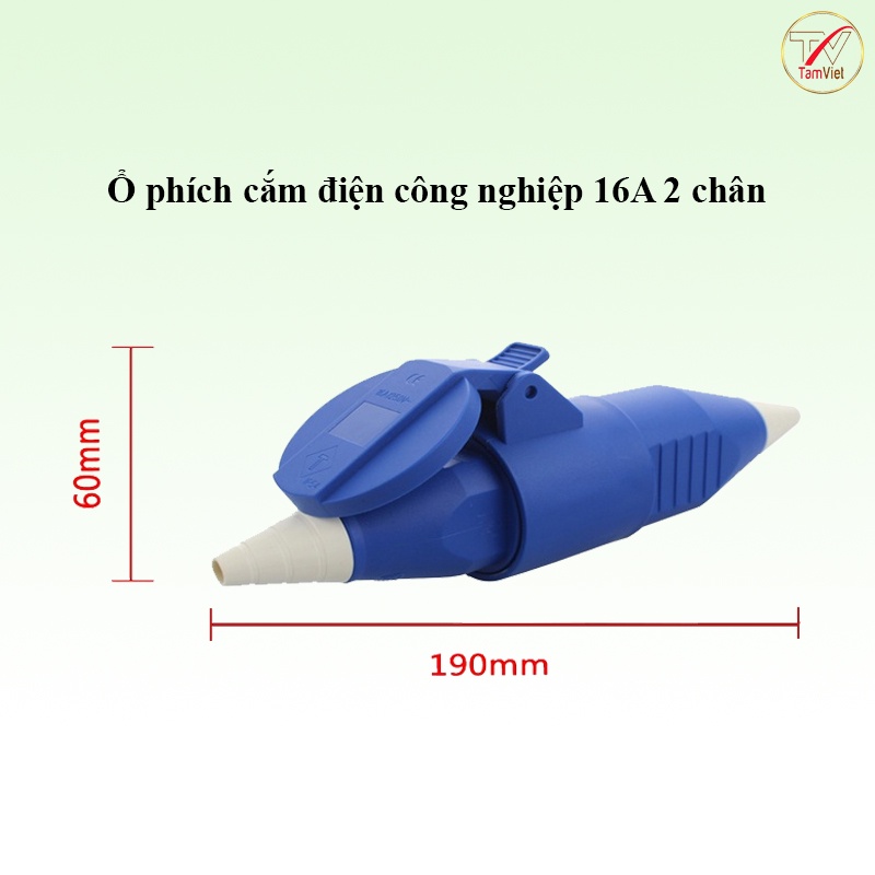 Portable industrial socket, 2-pin 16A multi-purpose power outlet
