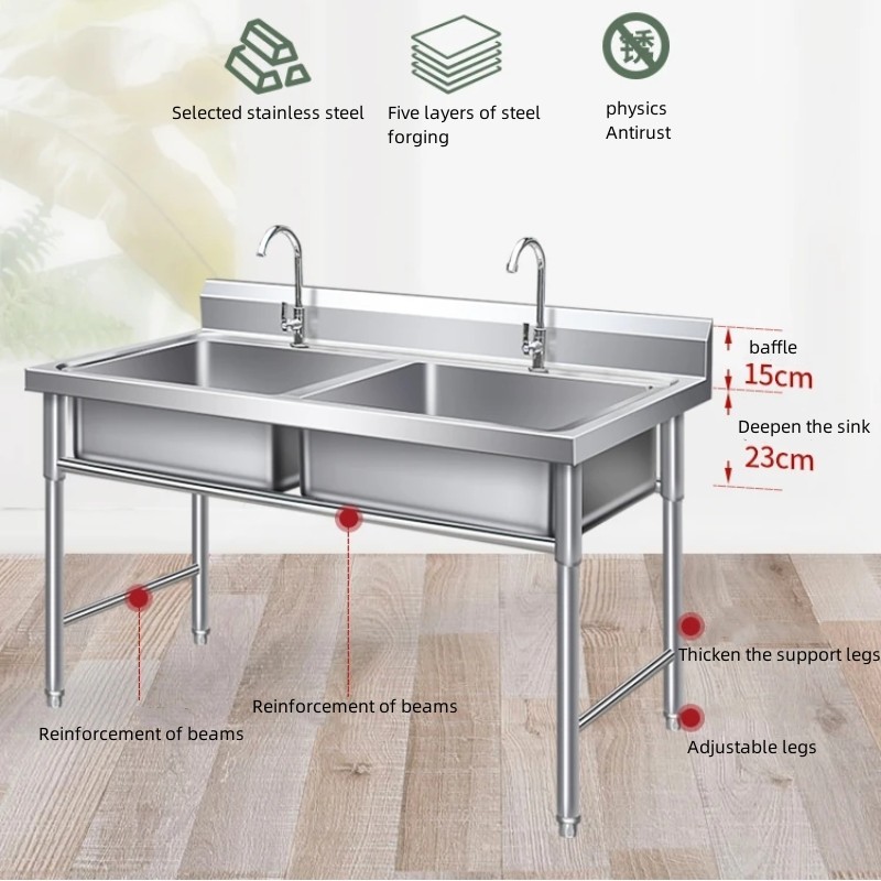Thickened commercial household kitchen stainless steel 304 sink washing dishwashing sink restaurant