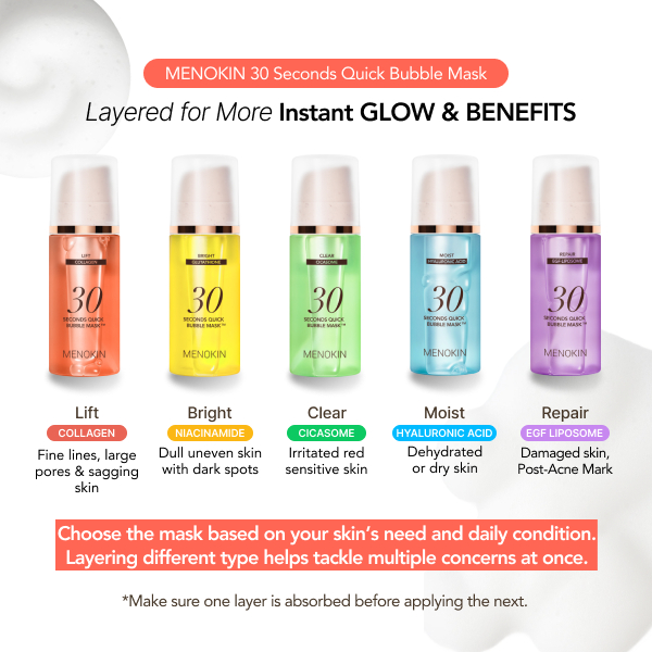 [MENOKIN] 30-Sec Micro Bubble Mask 95ml (FULL SET) Hydrating Radiance Glass Skin No Wash Face Mask