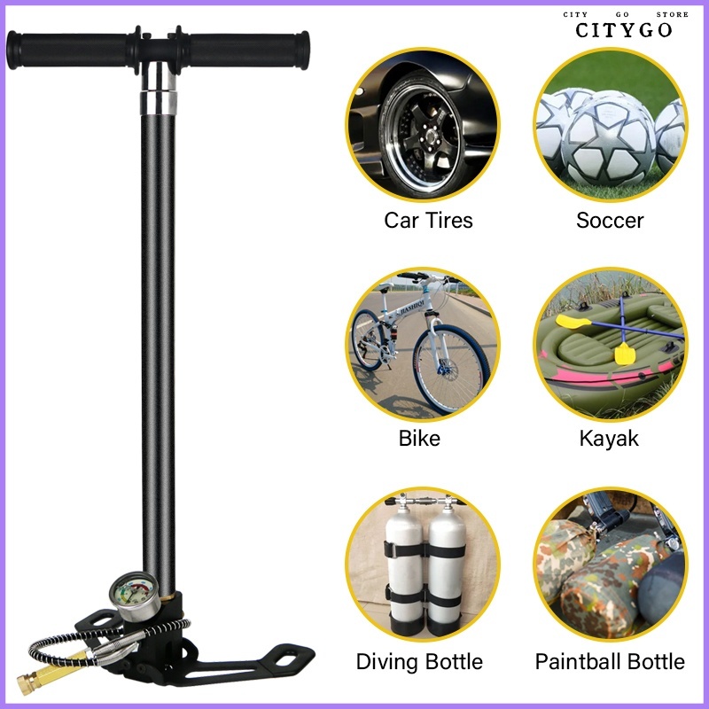 Air Pump 30mpa 4500psiHPA Boutique four Stage High Pressure PCP Pump 4 Stage Stainless Steel folding hand Operated pump Tank Hunting Car Bicycle Air Refilling measuring range 40mp