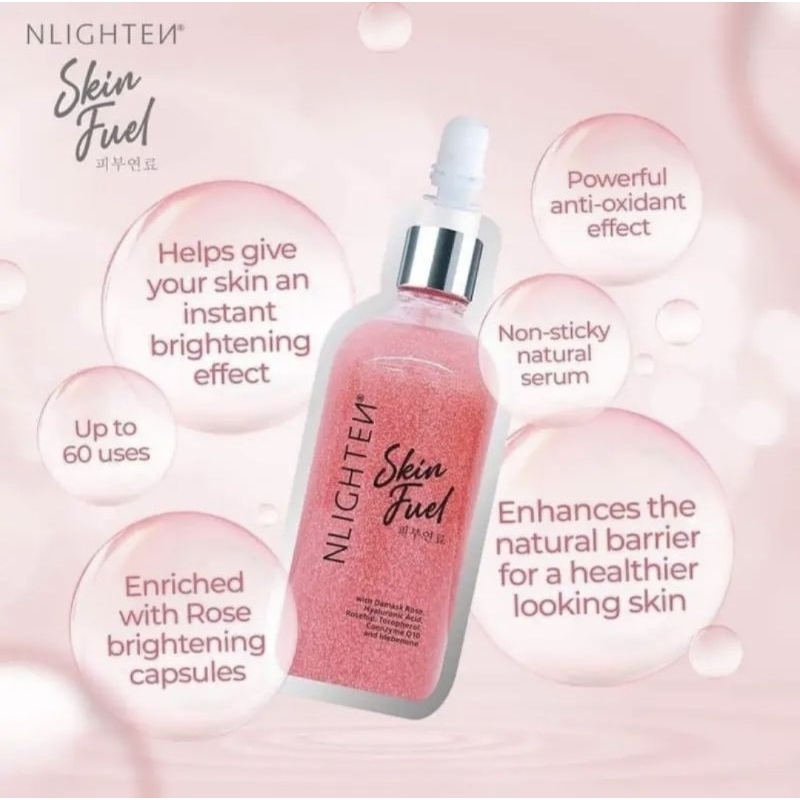 NLIGHTEN SKIN FUEL SERUM 30 ML spout w/damask rose hyaluronic acid rosehip tocopherol co enzyme q10