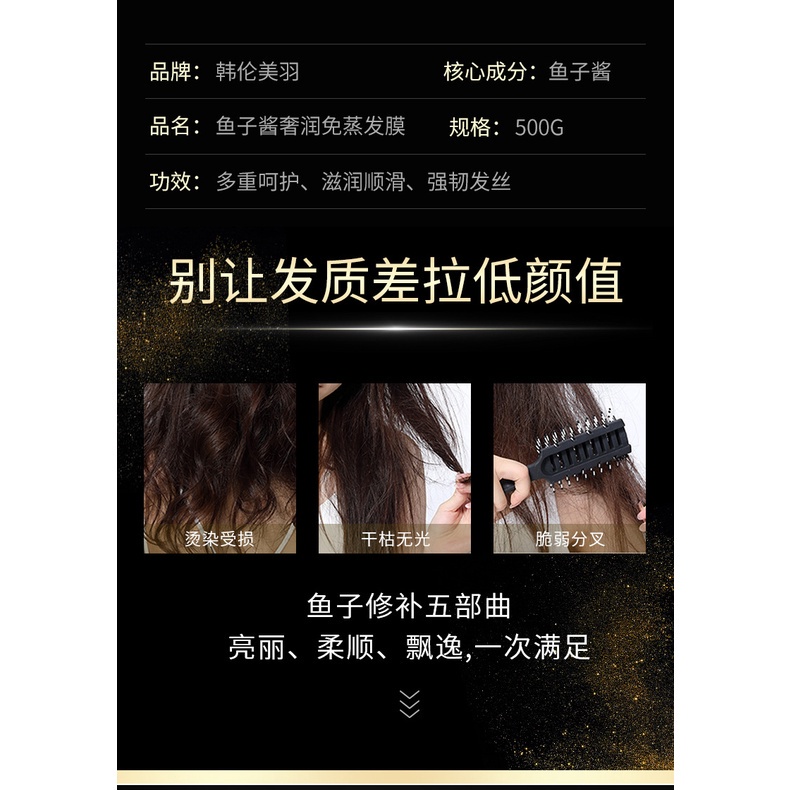 【锁水补水】韩伦美羽免蒸鱼子酱发膜500g 修护干燥护发素焗油膏深层补水头发护理 Caviar No Steaming Hair Film Repair Dry Hair Conditioner Hair Care