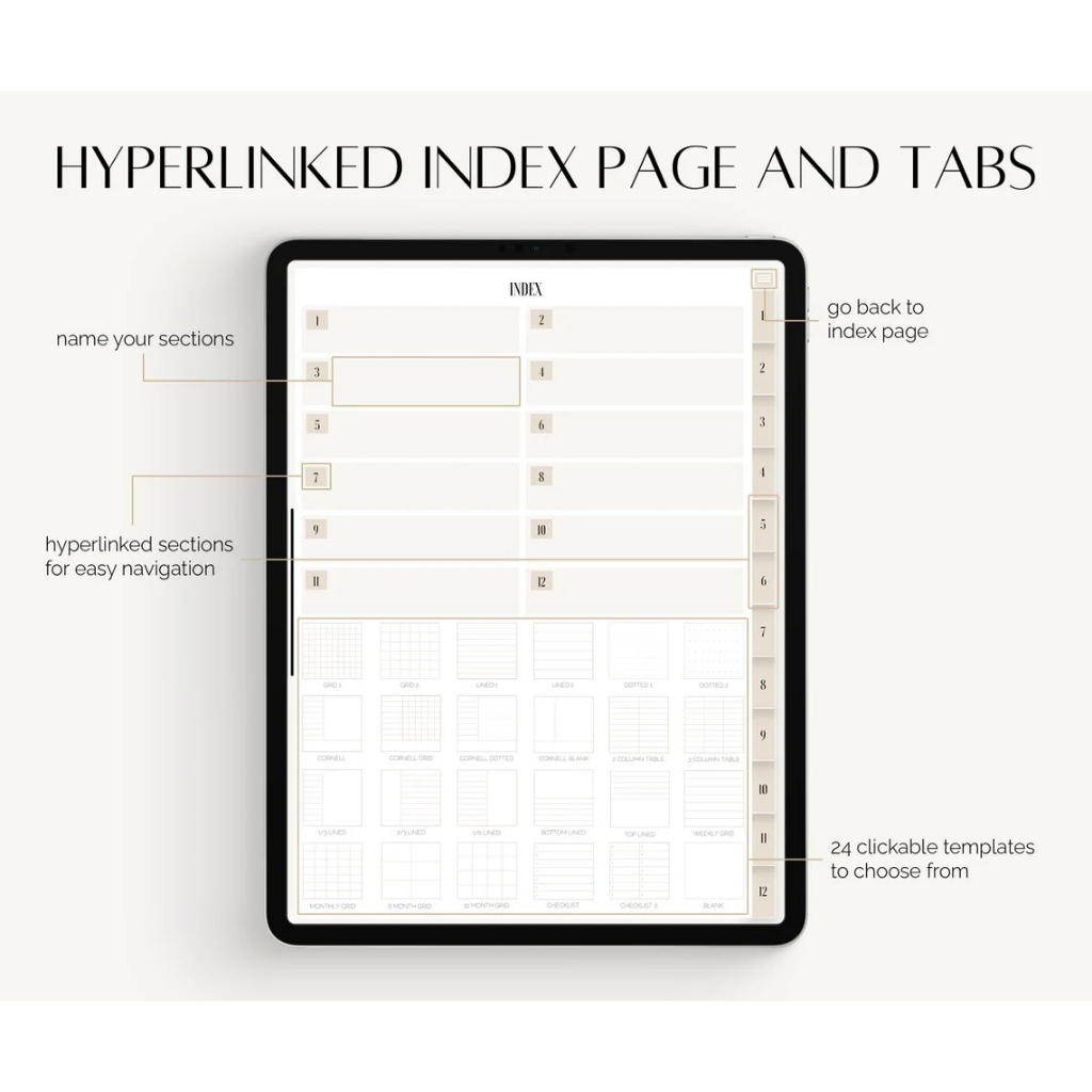 Portrait Digital Notebook Goodnotes, 12 Tab Digital Notebook for GoodNotes & Note-taking Apps, Digit