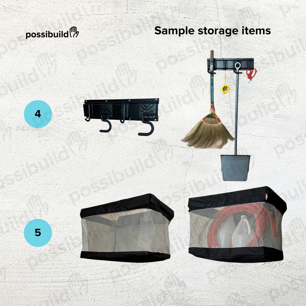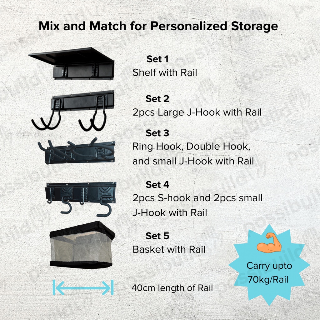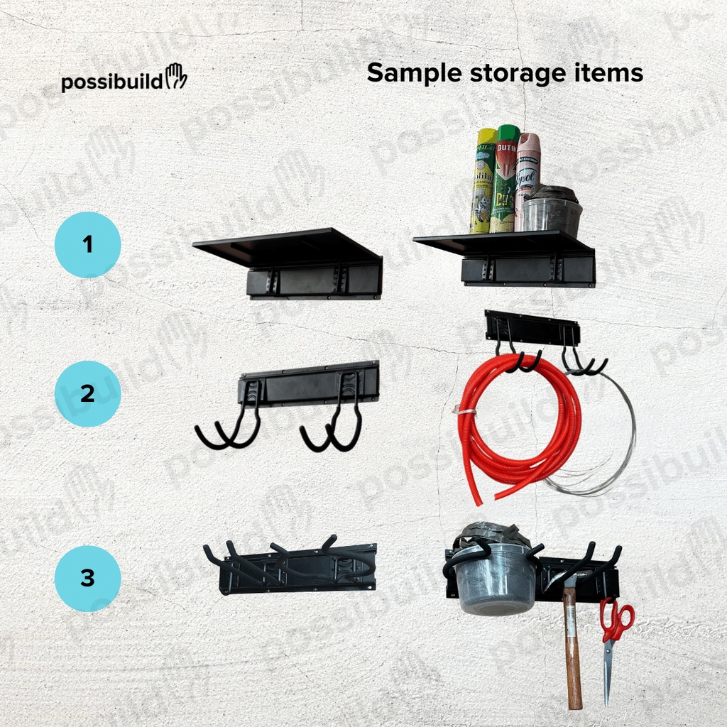 Possibuild Slatwall System Tools Organizer, Slat Rails Utility Garage Hooks