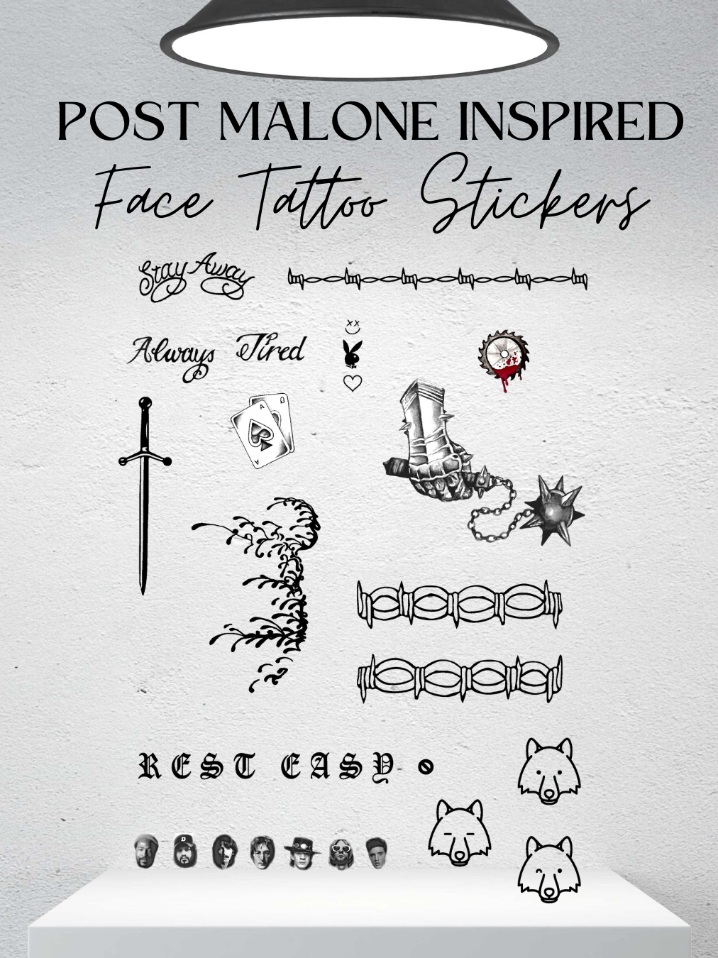 Post Malone Face Tattoo | Halloween Costume | Cosplay Fake Tattoo Sticker