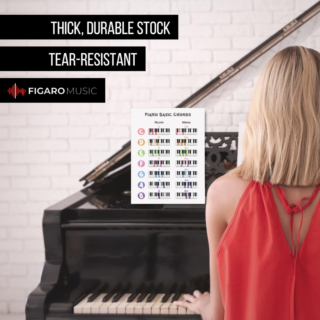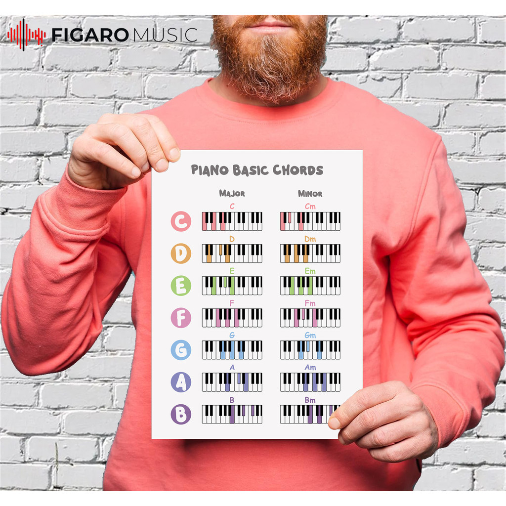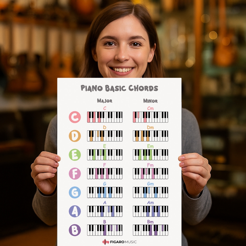 Basic Chords Chart Full Color Piano Poster - Piano Music Graphic Training