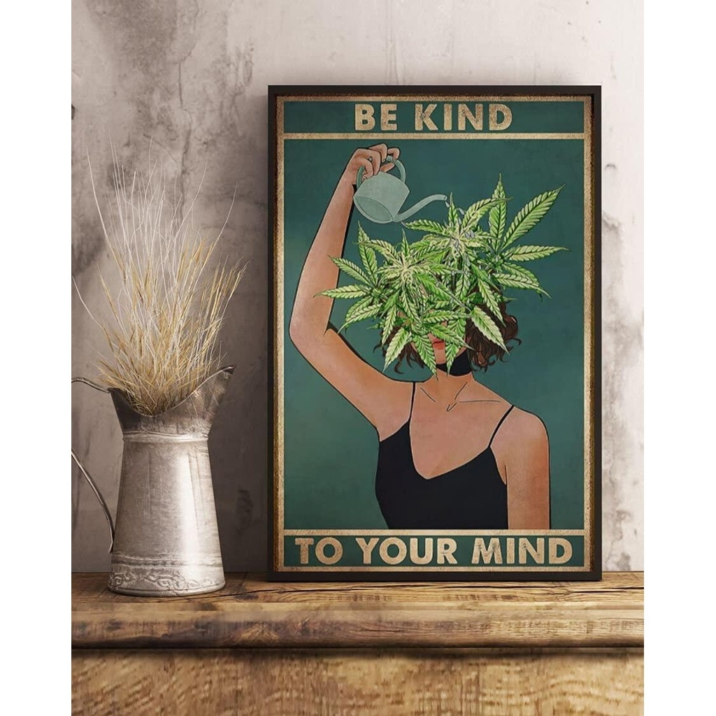 Pot Head Poster Be Kind To Your Mind Poster Cannabis Poster Vintage Cannabis Marijuana Pot Head Weed Poster Wall Art Poster Cute Sign Wall Decor Metal
