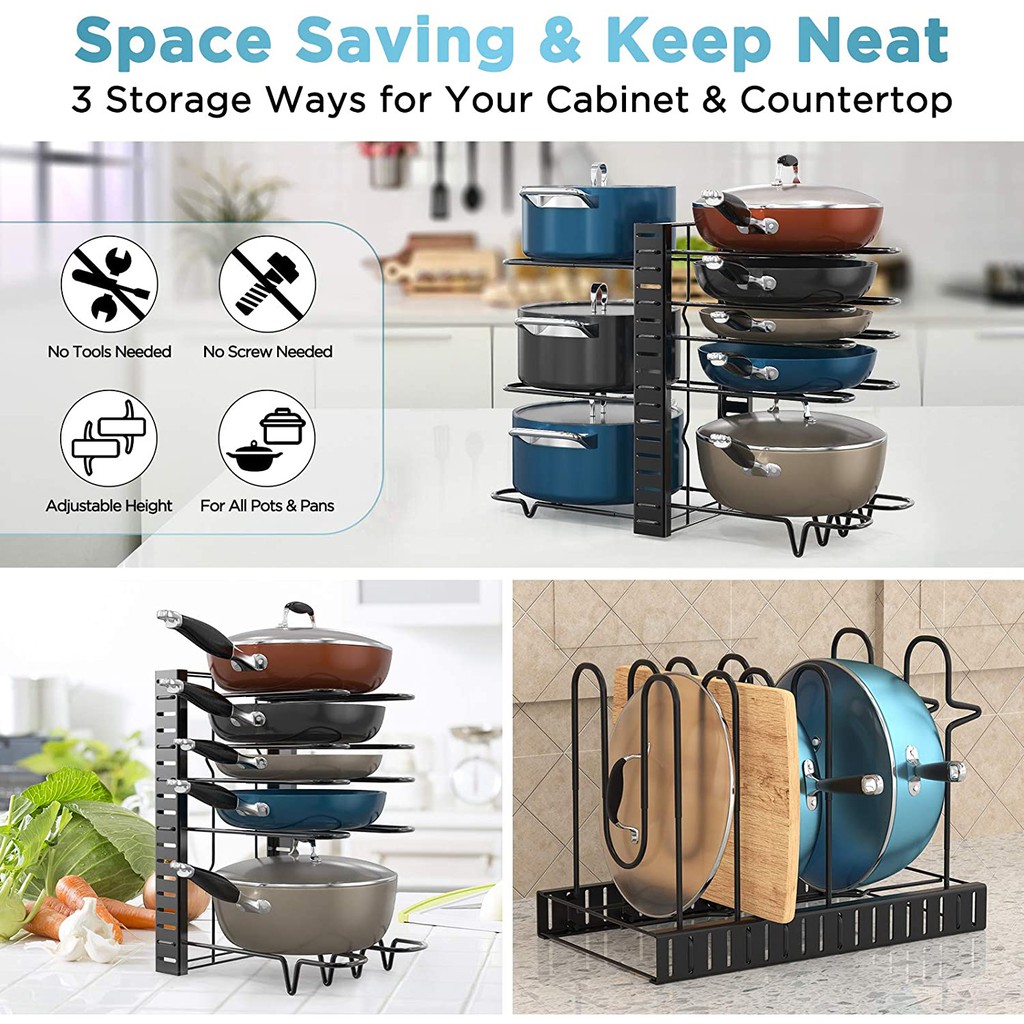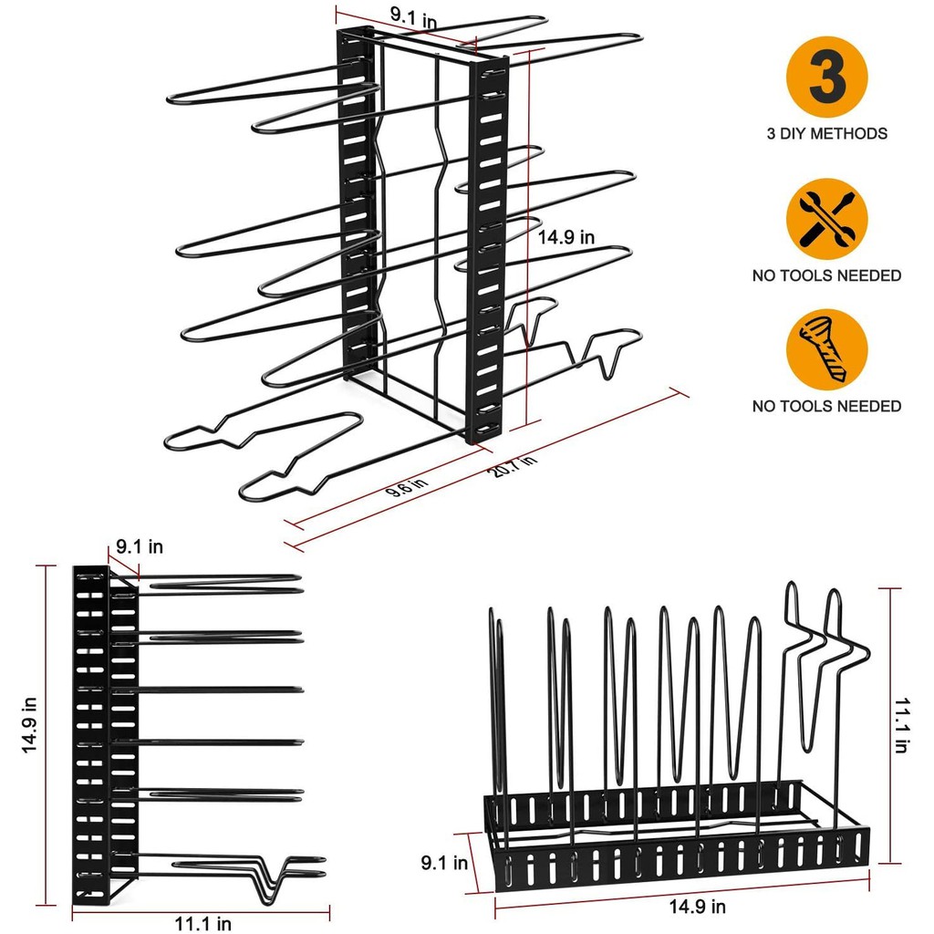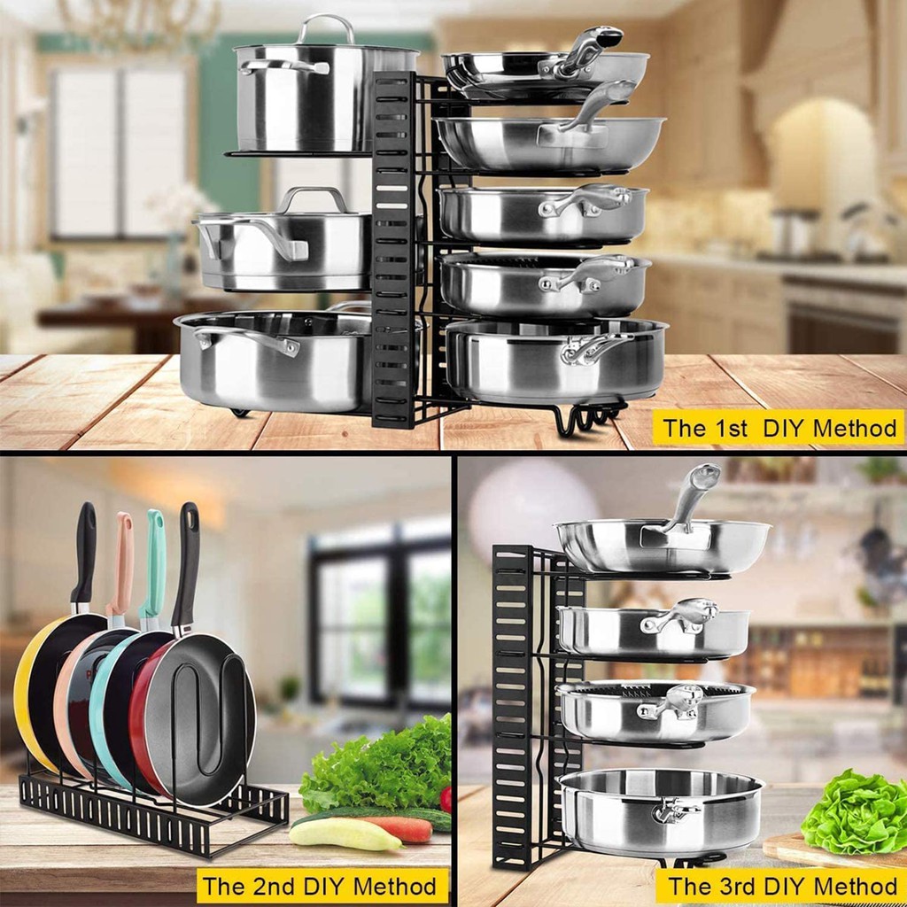 Pot Rack Organizer-Adjustable 8+ Pots and Pans Oragnizer with 3 DIY Methods