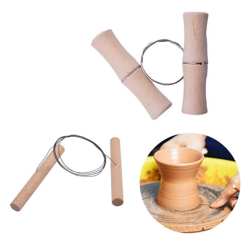 Pottery Cutting Mud Line Wooden Handle Spring Mud Cutter Spring Texture Pottery DIY Mud Slicing Tool Clay Plate Forming Tool
