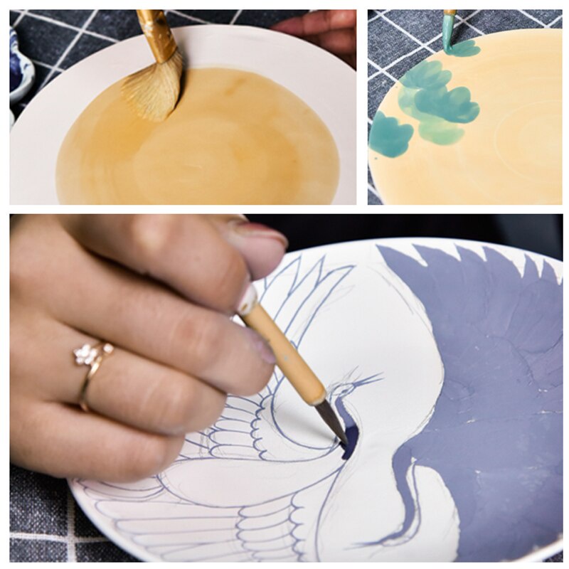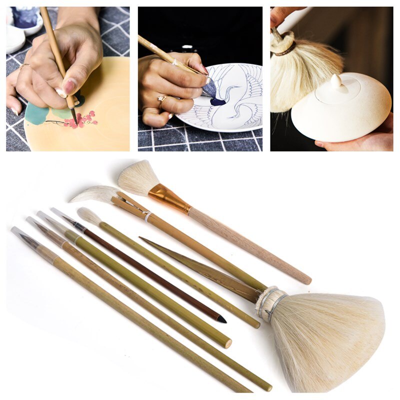 Pottery art painting tools 8 brushes for strokes, sweeping dust, moisturizing and complementary color ceramic coloring pens