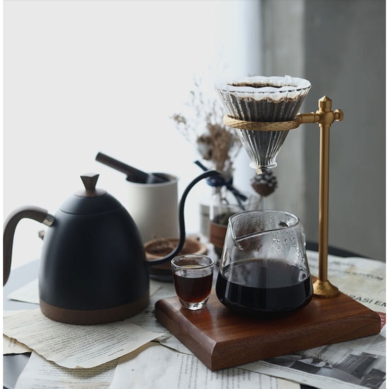 Pour-Over Coffee Dripper with Wood Stand-Heavy-Duty-Adjustable Height Hand Coffee Filter Holder Dripper Pot Rack Coffee Accessor