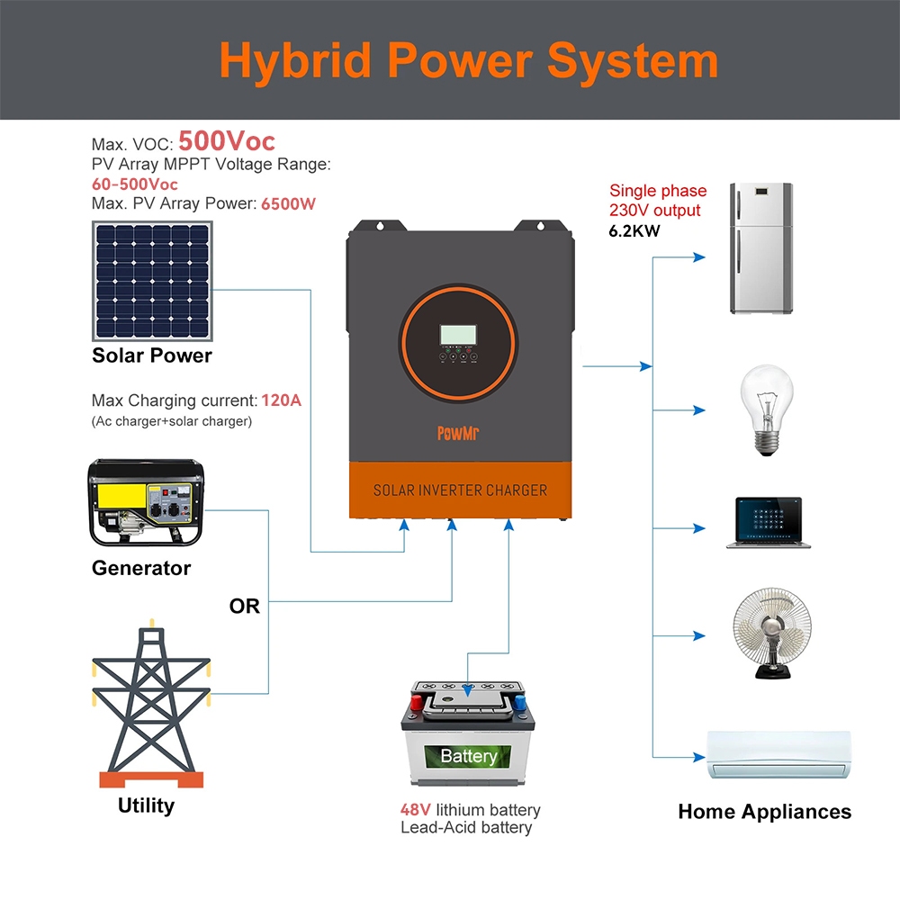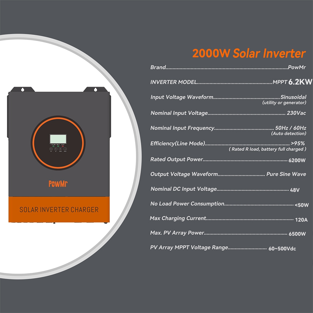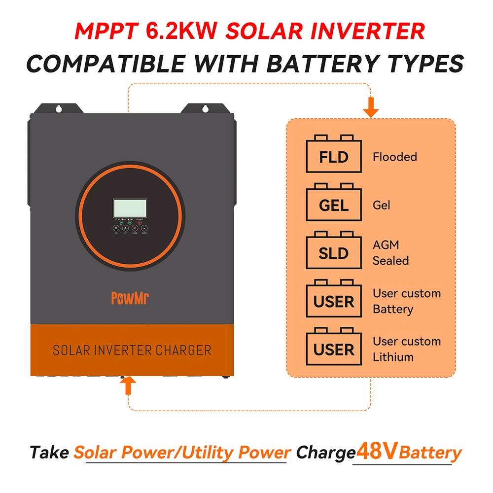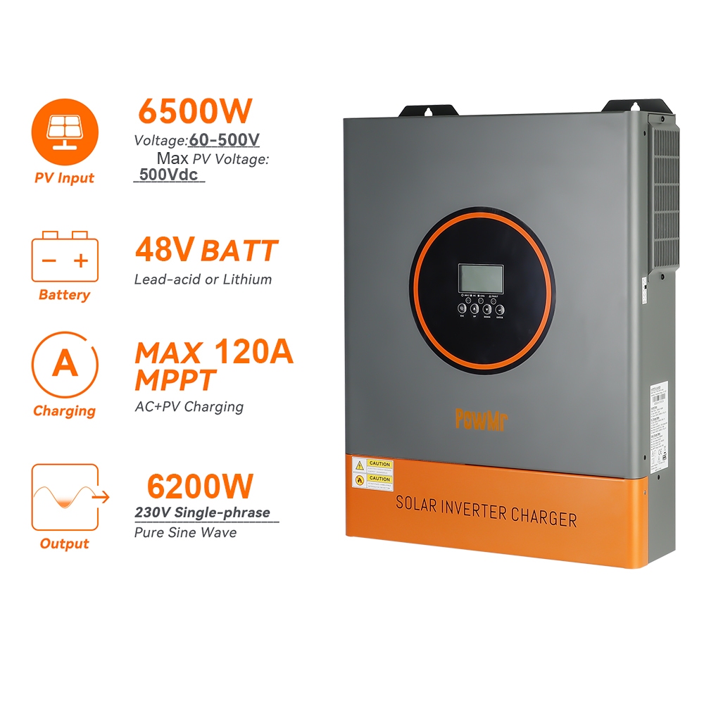 PowMr 6.2KW 48V Hybrid Dust Protection Kit Inverter 60-500Vdc Pv Input Bulit In 120A MPPT Solar Charger Controller Solar Inverter All in One Inverter