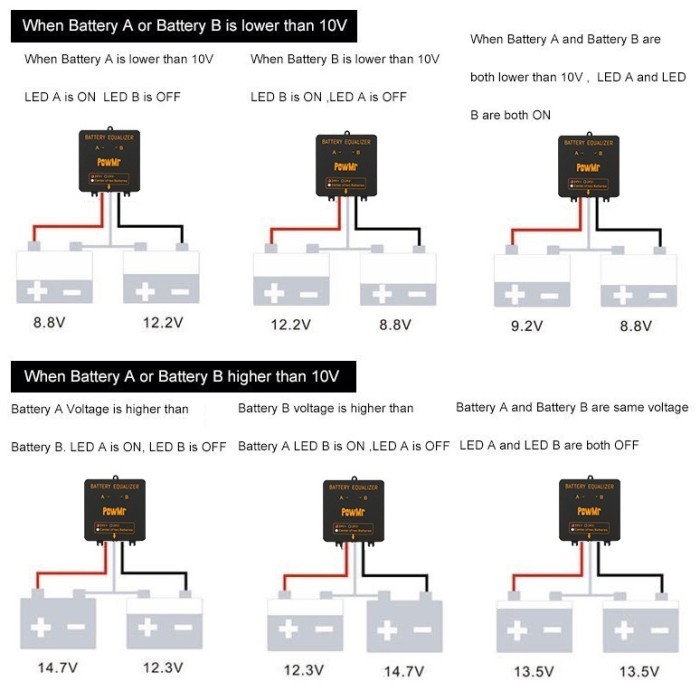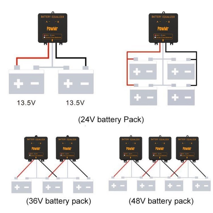 PowMr Battery Equalizer For 2 x 12V Thermal Acid Gel AGM-type Battery System N*12V Battery Equalizer Maintain Battery Balance
