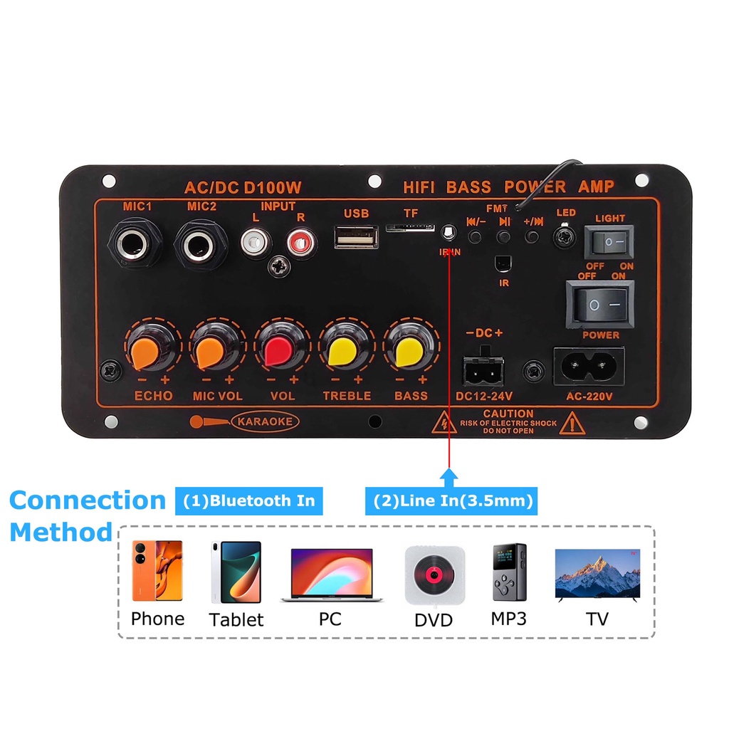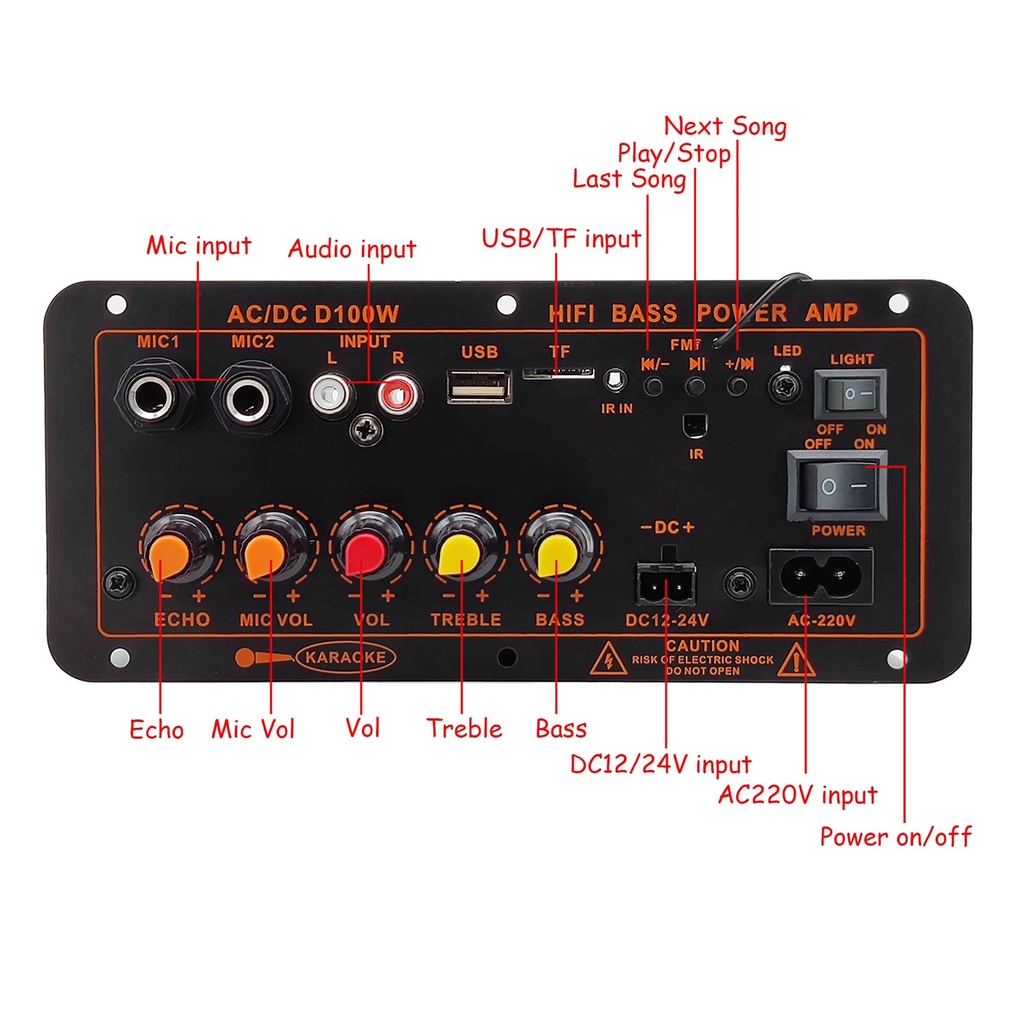 Power Amplifier Board 220V 12V 24V 30W 60W 100W Digital Bluetooth 5.0 Subwoofer Amplifier Board for 6-15 Inch Speaker
