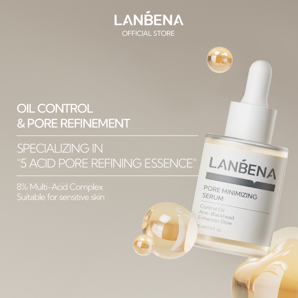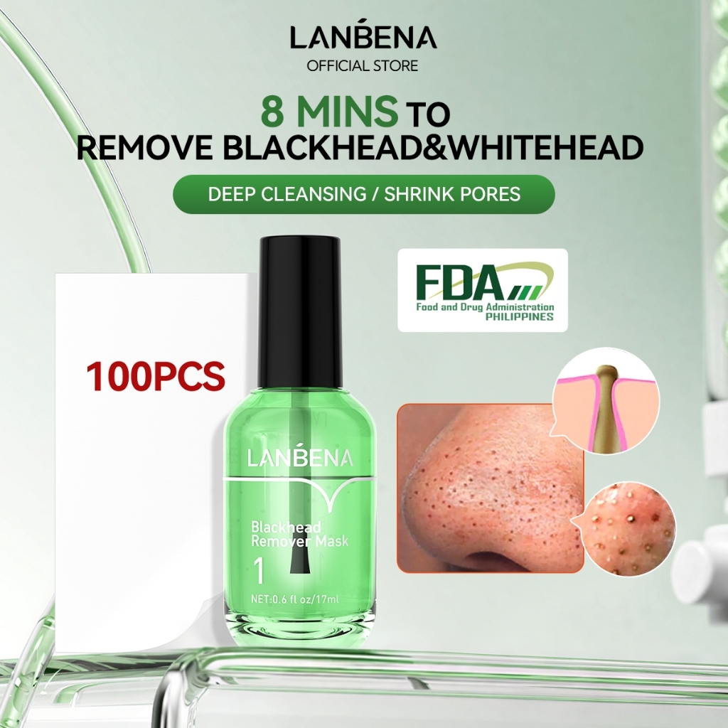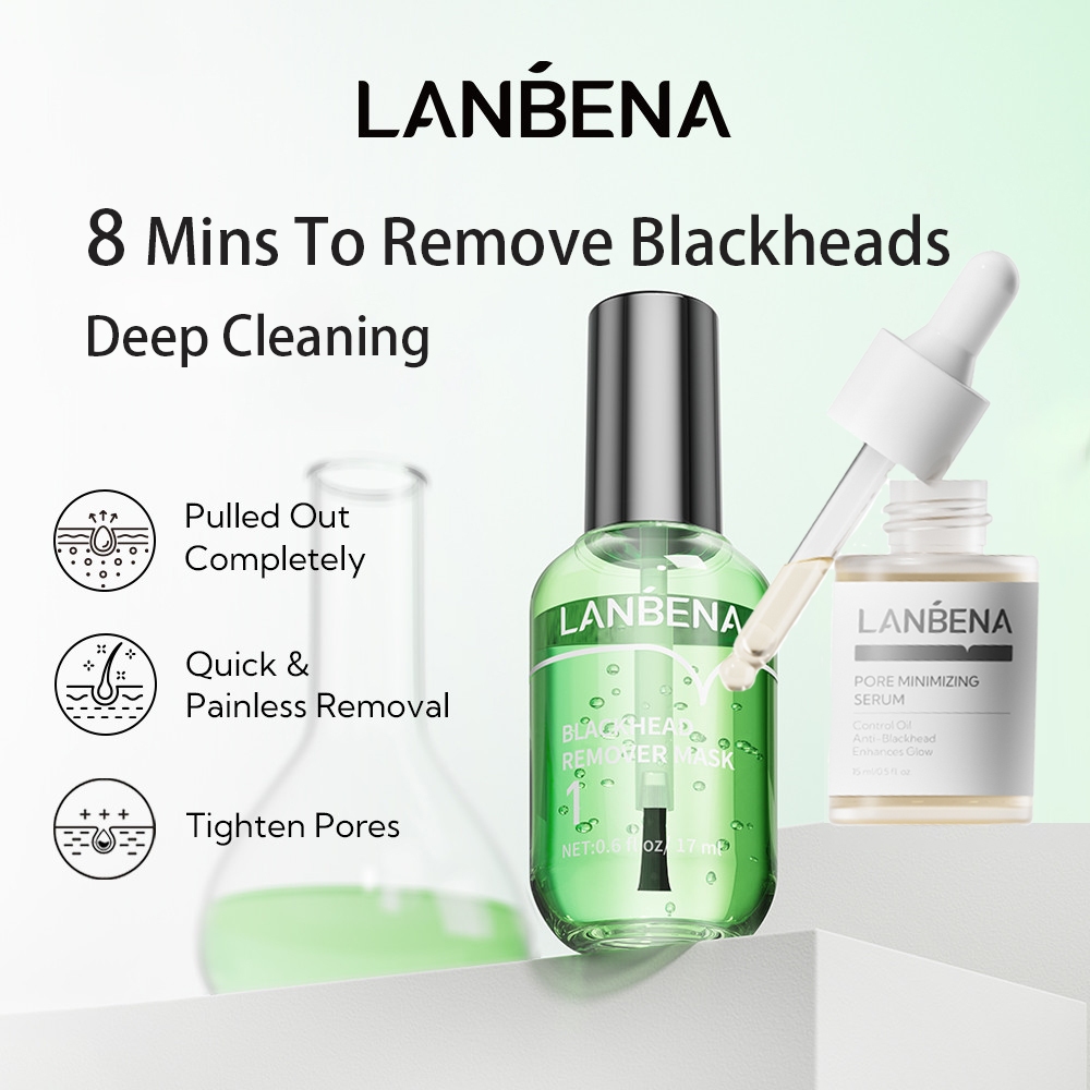 LANBENA Blackhead Remover Deep Cleaning Black Heads Removal Nose Strip Pore Minimizing Serum Oli Control Essence White Blackhead Removal Serum 17ML