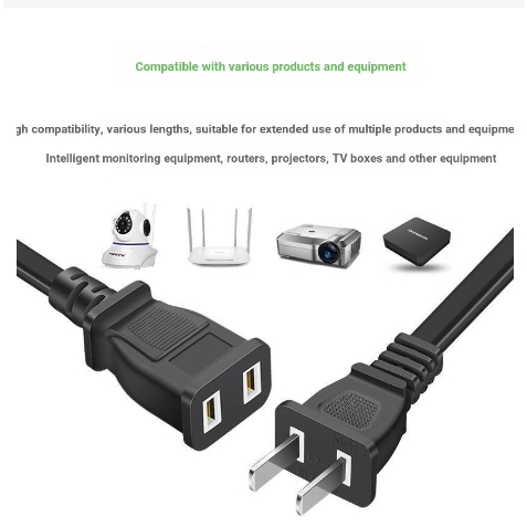 Power Cord Extension 2 Pin Dual Portable Extension Cord 1.5M/2M/4M (for Low-Power Small Appliances)