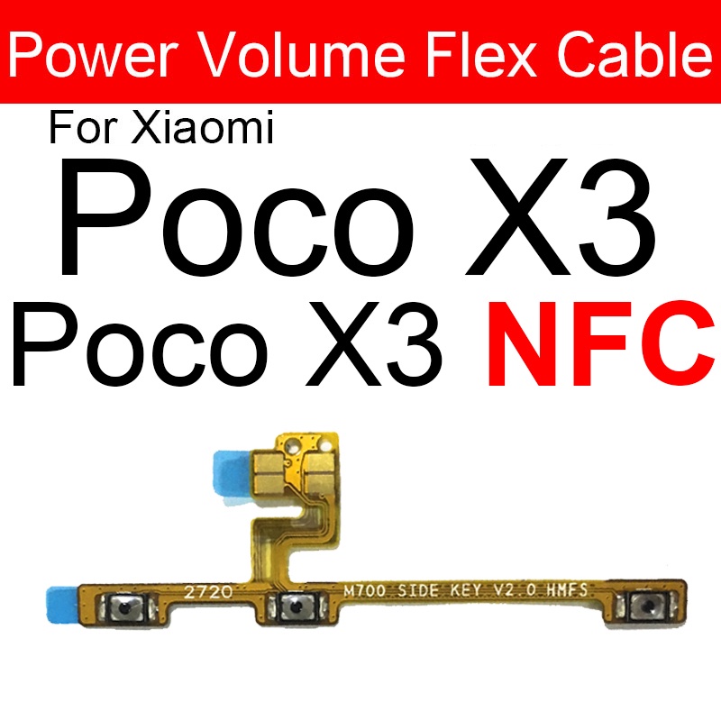 Power Key & Volume Side Button Flex Cable For Xiaomi Pocophone Poco F1 F3 F2 Pro X2 X3 NFC GT C3 M2 M3 Pro Replacement Parts