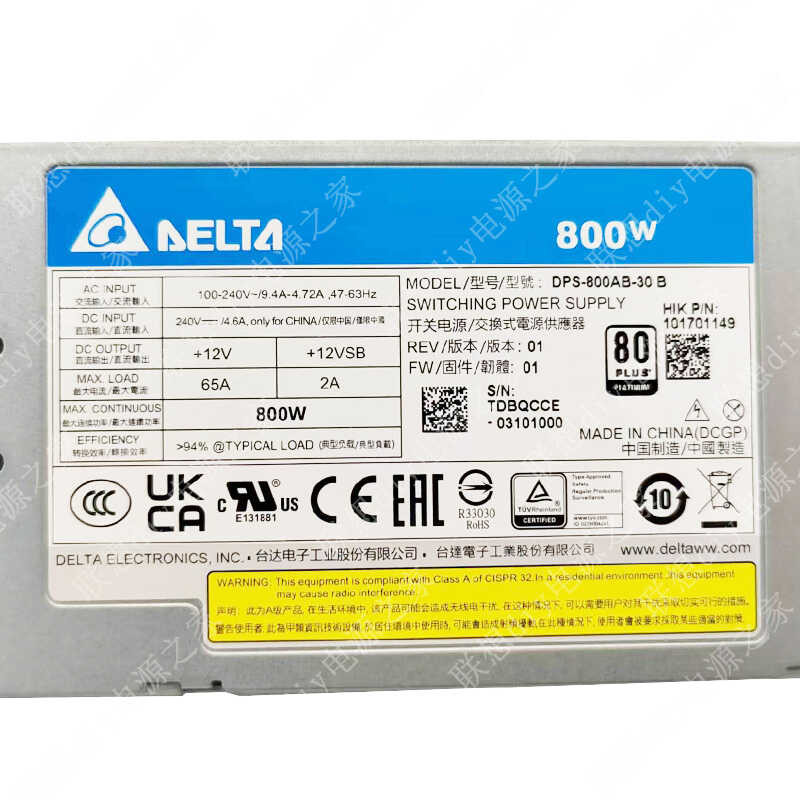 Power Redundant Supply Server Power Supply Delta Dps-800Ab-30B Pn/101701149 Power Module 800W