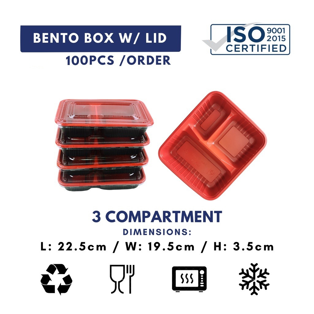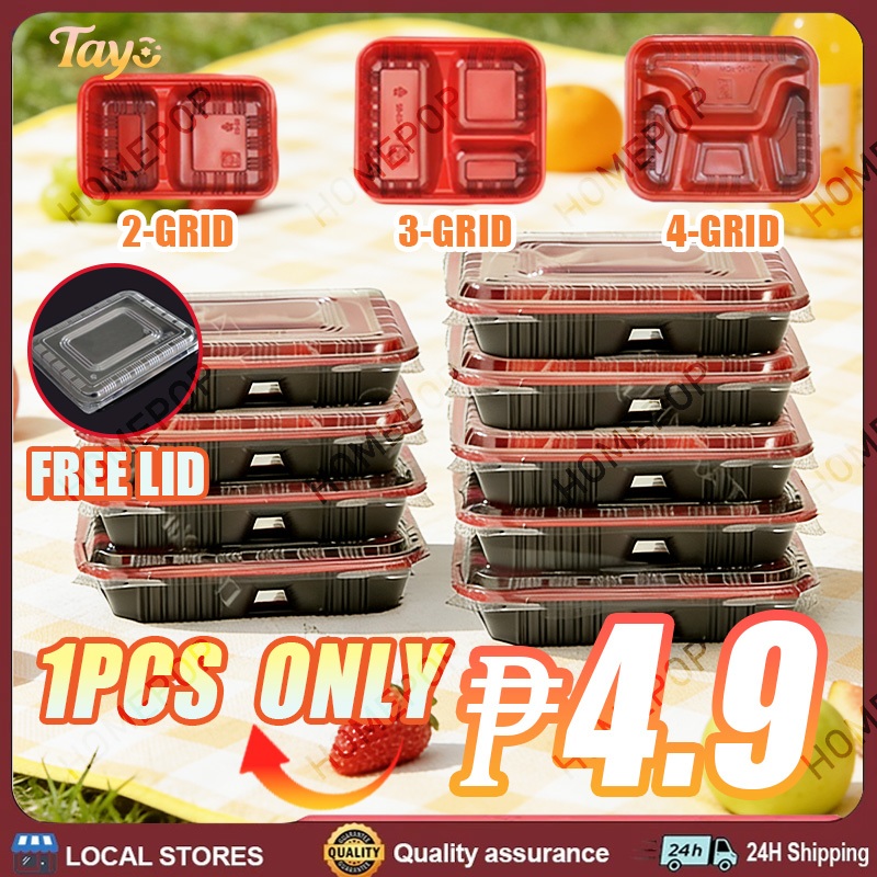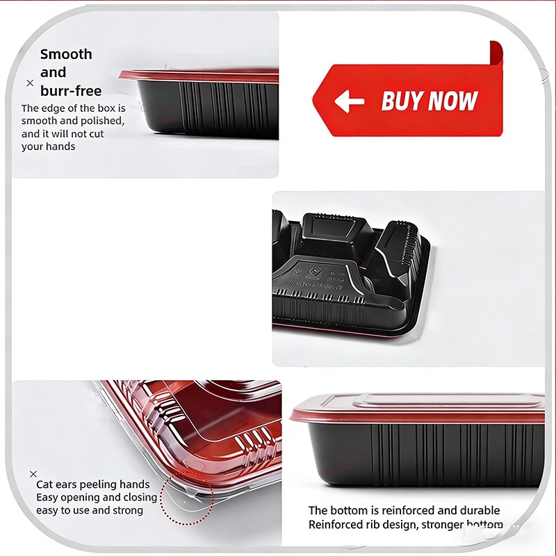 100PCS Disposable Bento Box with Lid 3/4 Compartment Heavy Duty Plastic Food Container Lunch Box for Meal Prep Fast Food Packaging Wholesale