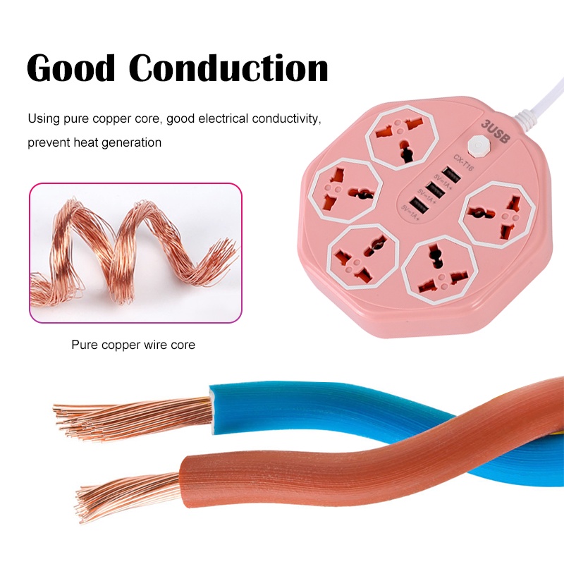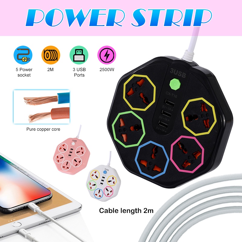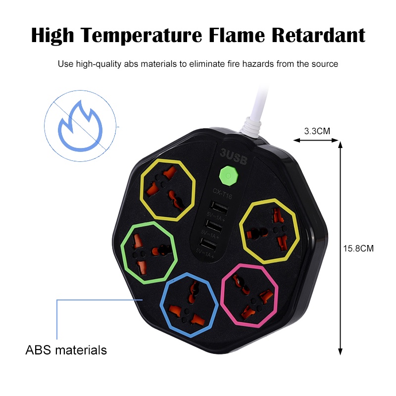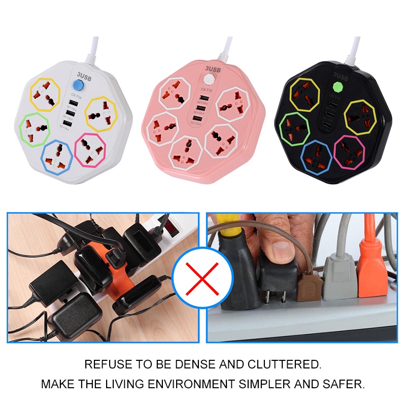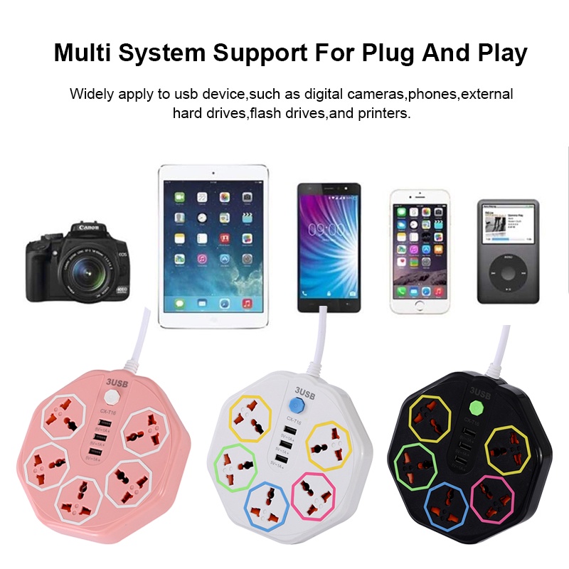 Power Socket Extension Outlet With 3 USB Ports Multi Plug Electric Socket Extension Cord Sockets