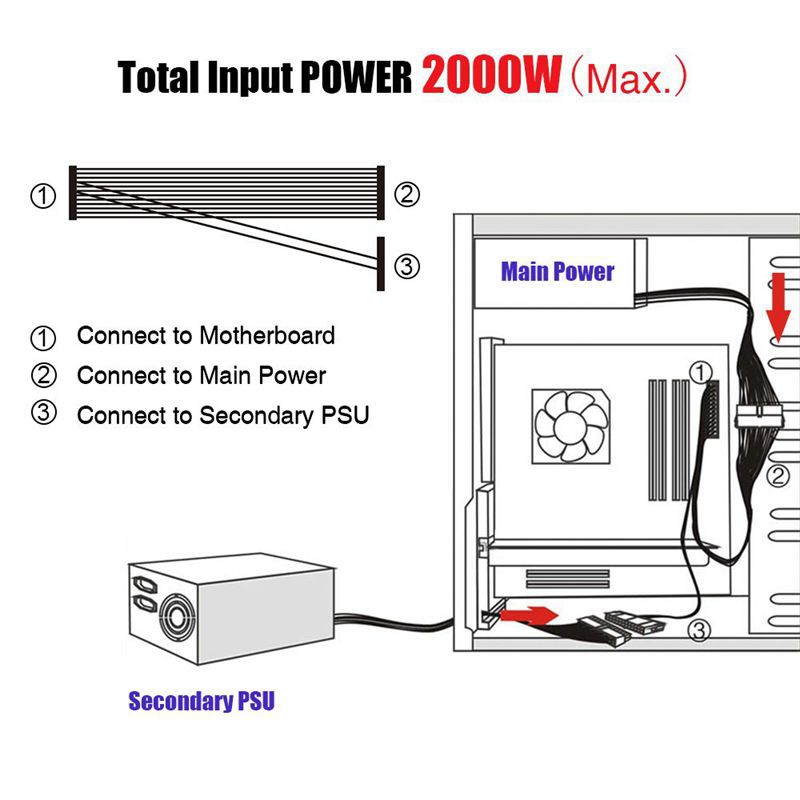 Power Supply Splitter, Dual PSU Cable Adapter 24 Pin 20+4 Pin ATX Motherboard Adapter Extension Cable Dual 24-Pin Mining Adapter 12 Inch (30CM)