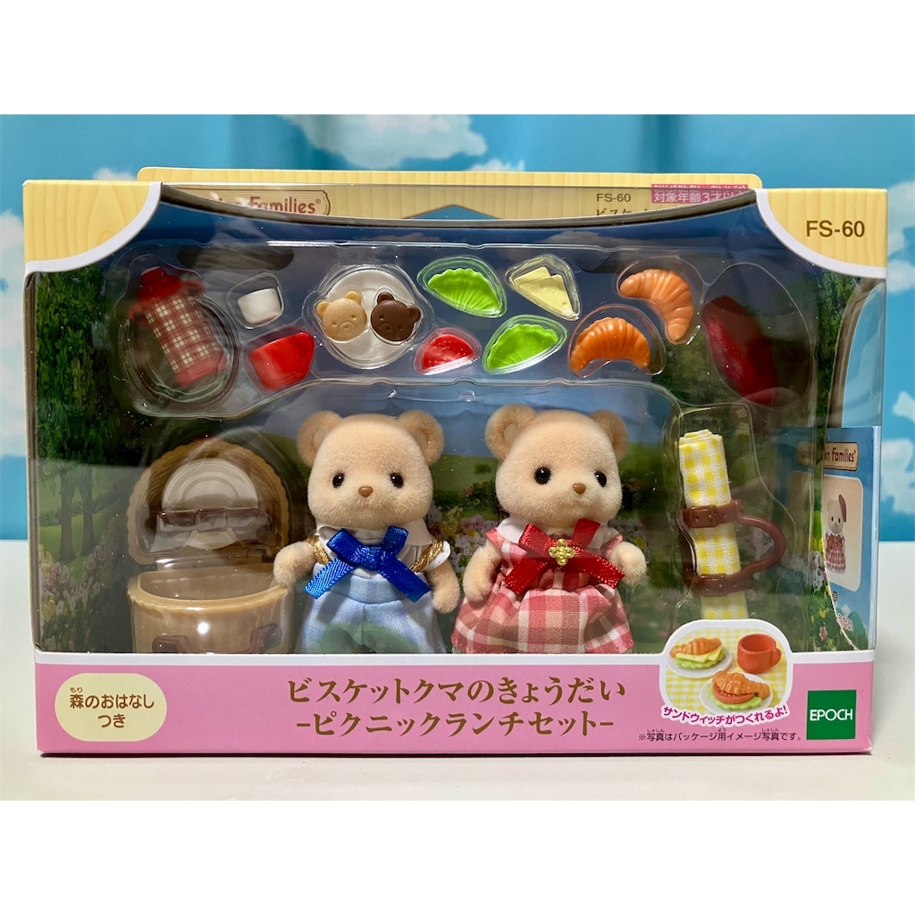 Sylvanian Families Doll and Furniture Set [Biscuit Bear Siblings - Picnic Lunch Set] FS-60 ST Mark