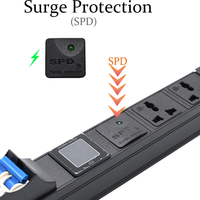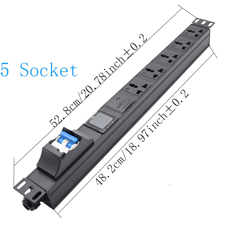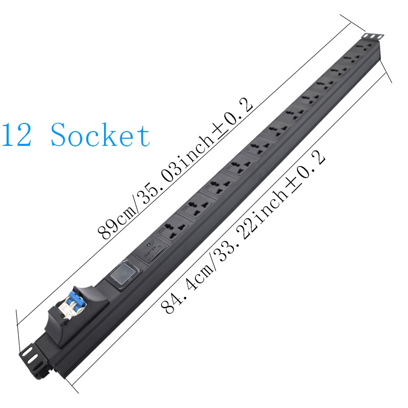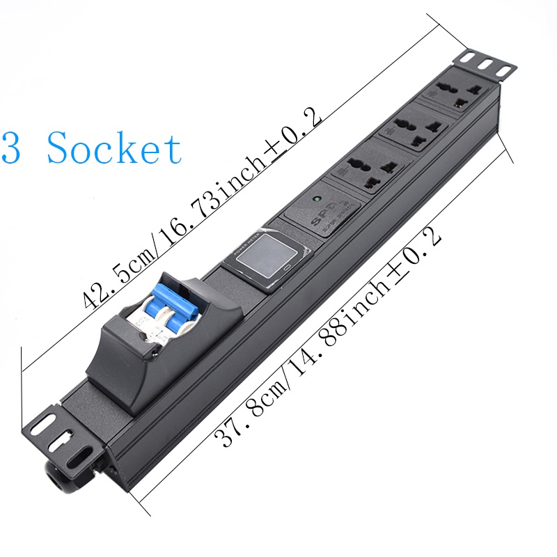 Power distribution unit PDU cabinet multi-function digital display board, 16A air switch with lightning protection current, voltage, power digital display meter, EU plug 2m cable.