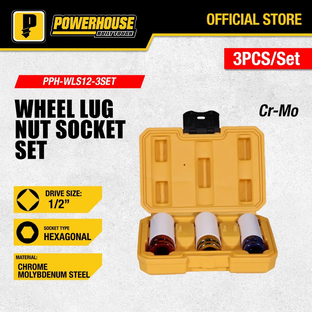 PowerHouse 3pcs 1/2" Drive Wheel Lug Nut Socket Set PHHT