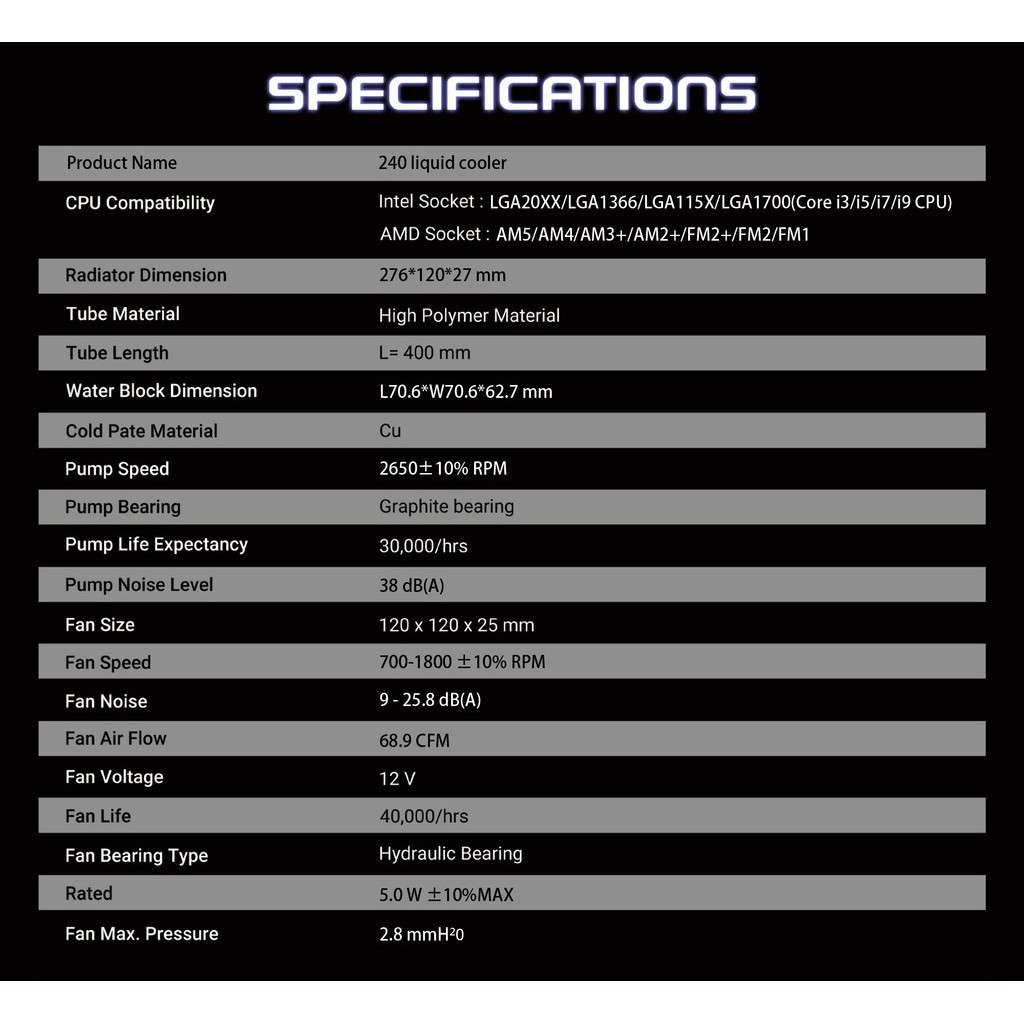 Powercase Rgb Aio Liquid Cpu Cooler 240mm Radiator Computer Radiator Water Cooling Cooler