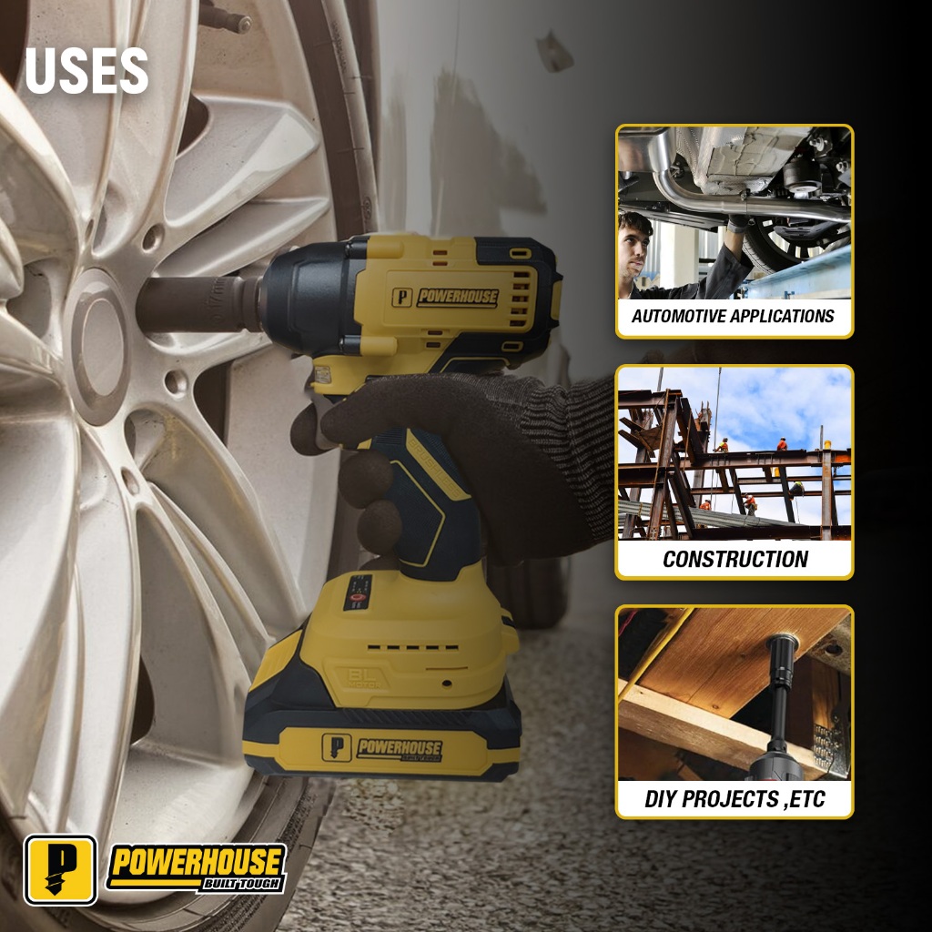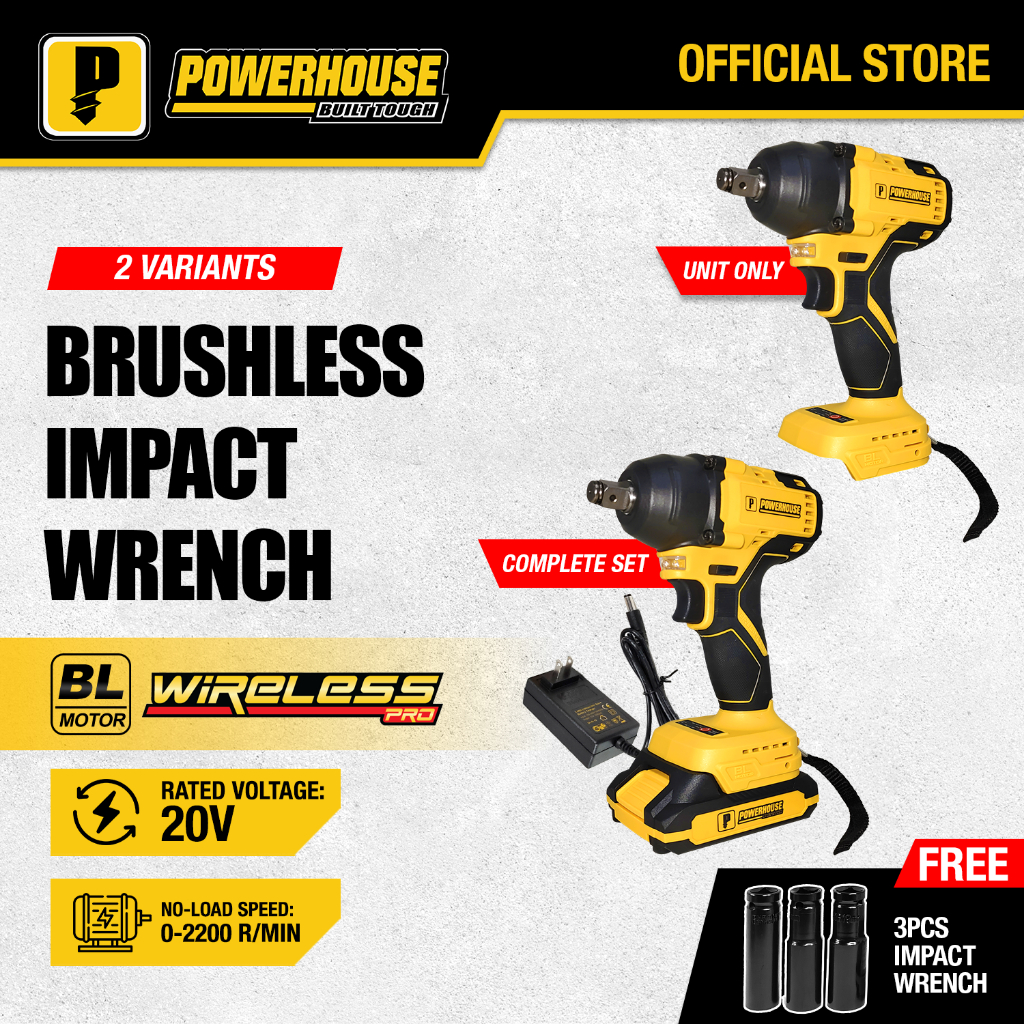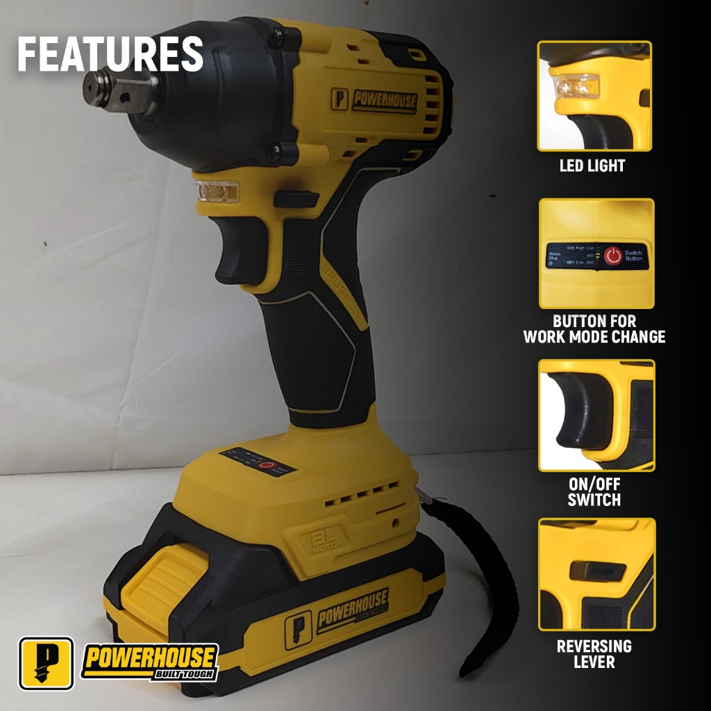 Powerhouse 20V Cordless Impact Wrench Brushless Square Drive Nut Runner Socket PHPT
