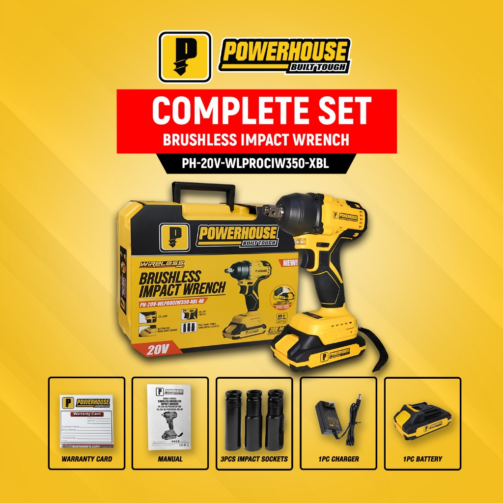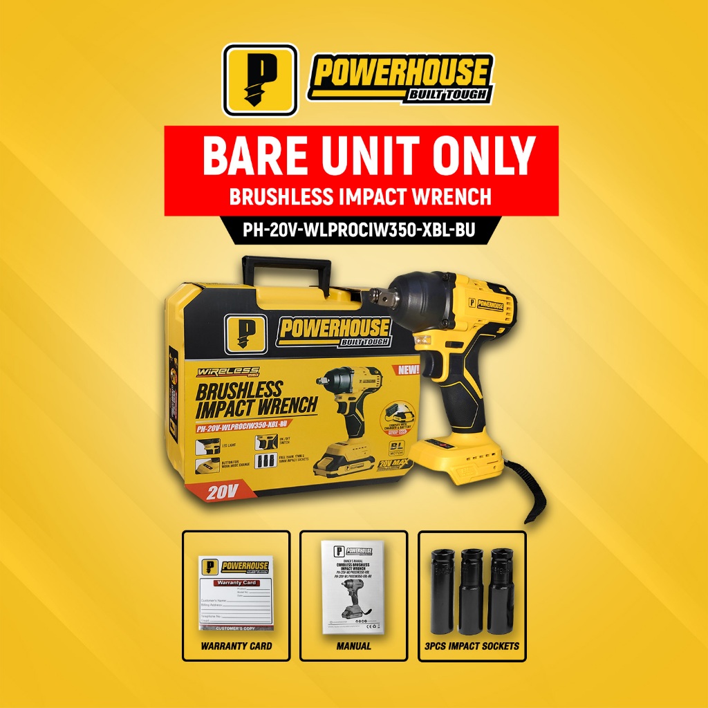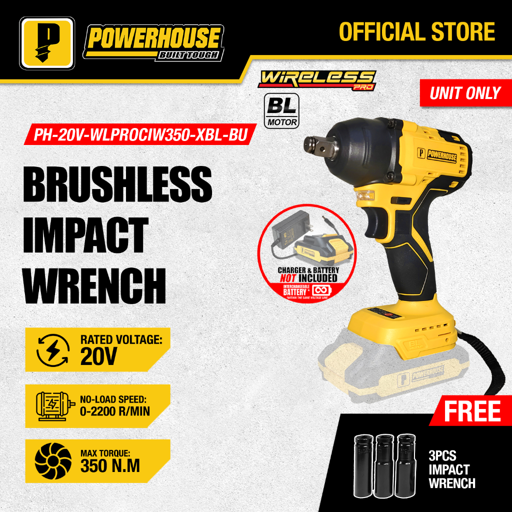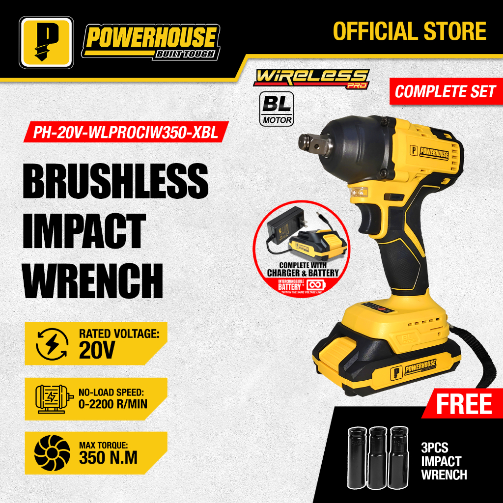 Powerhouse 20V Cordless Impact Wrench Brushless Square Drive Nut Runner Socket PHPT