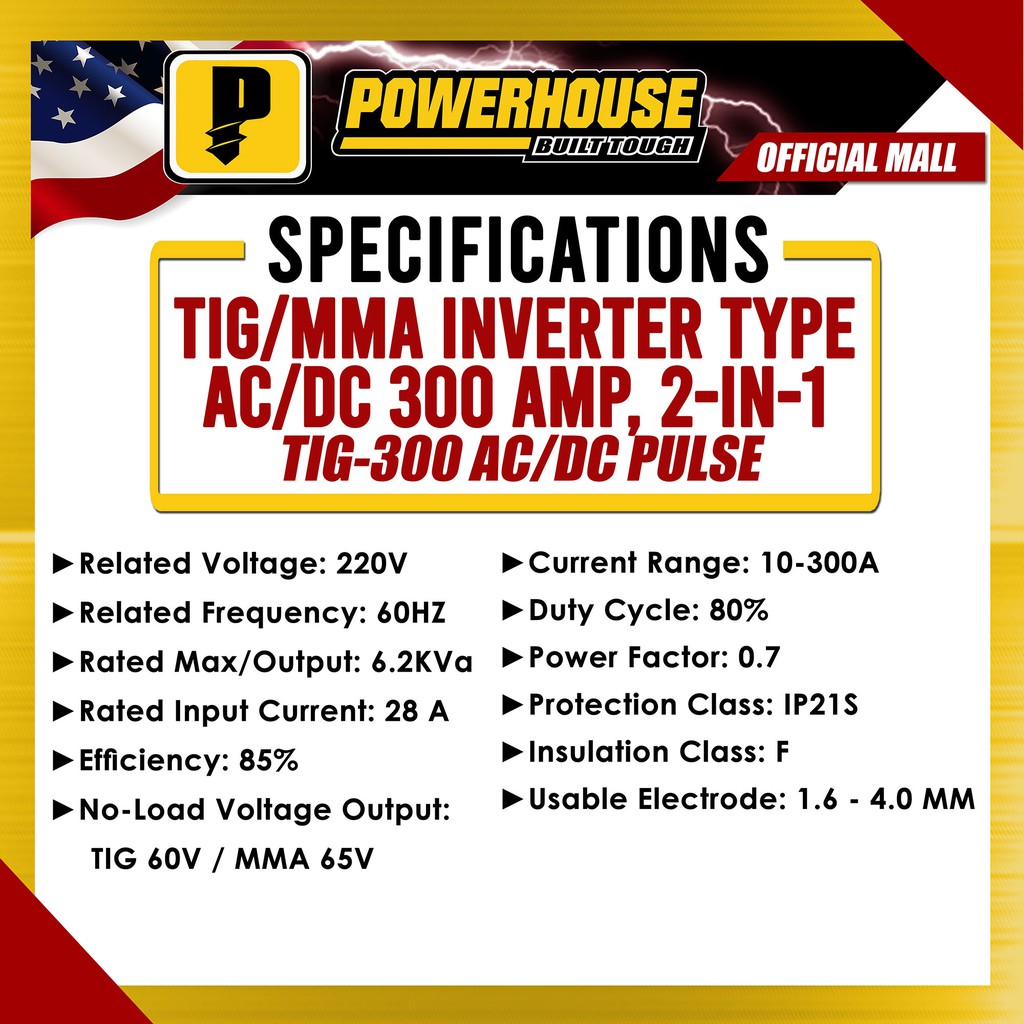 Powerhouse AC-DC TIG / MMA 2IN1 250A / 300A PULSE SERIES Inverter Heavy Duty Welding Machine PHWM