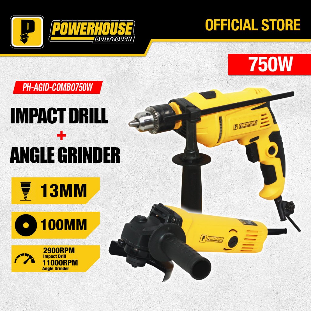Powerhouse Angle Grinder 750W and Impact Drill 750w Combo Set PH-AGID-COMBO750W PHPT