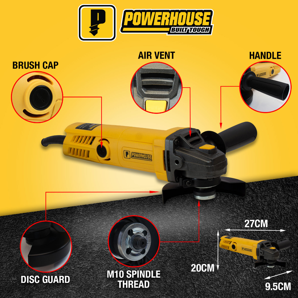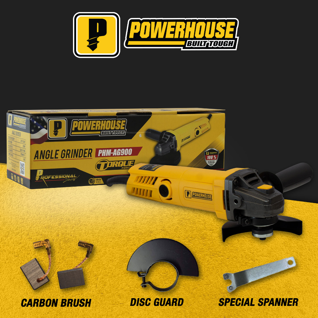 Powerhouse Angle Grinder Set Original Torque Force With Back Switch 4 900w Phm-Ag900hd Phpt