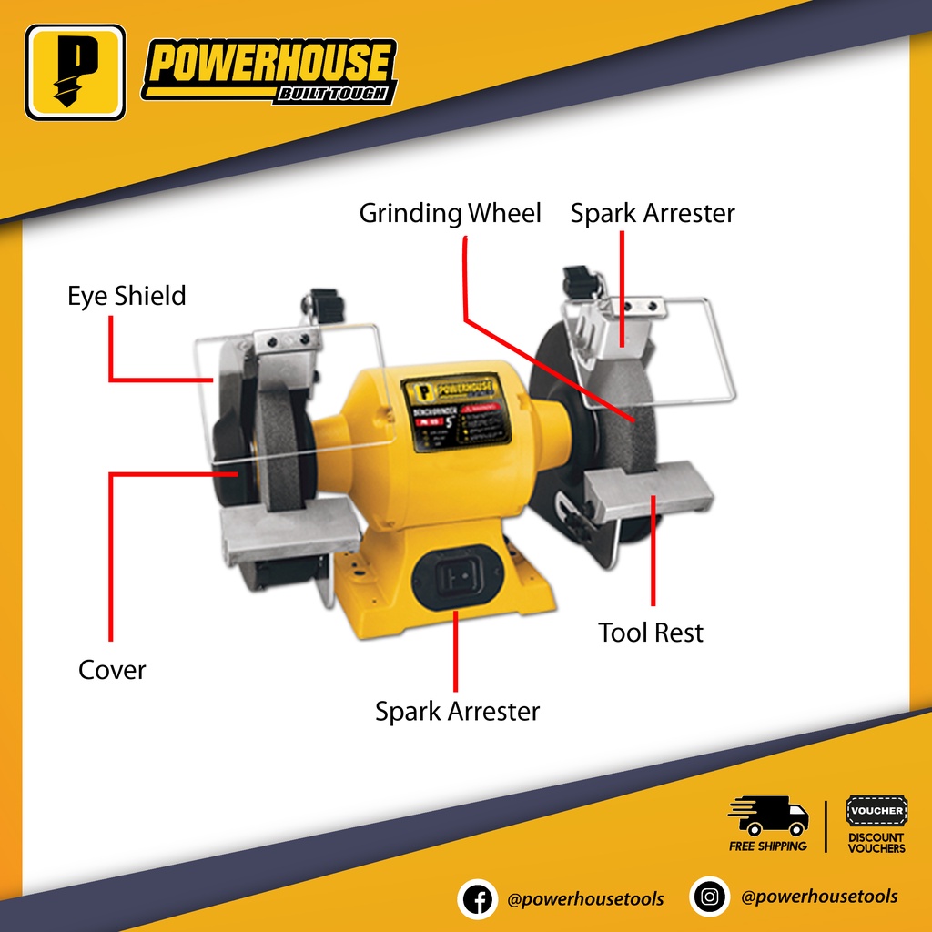 Powerhouse Bench Grinder with Grinding Wheel Pure Copper 5" / 6" / 8" / 10" Inches Original PHPT