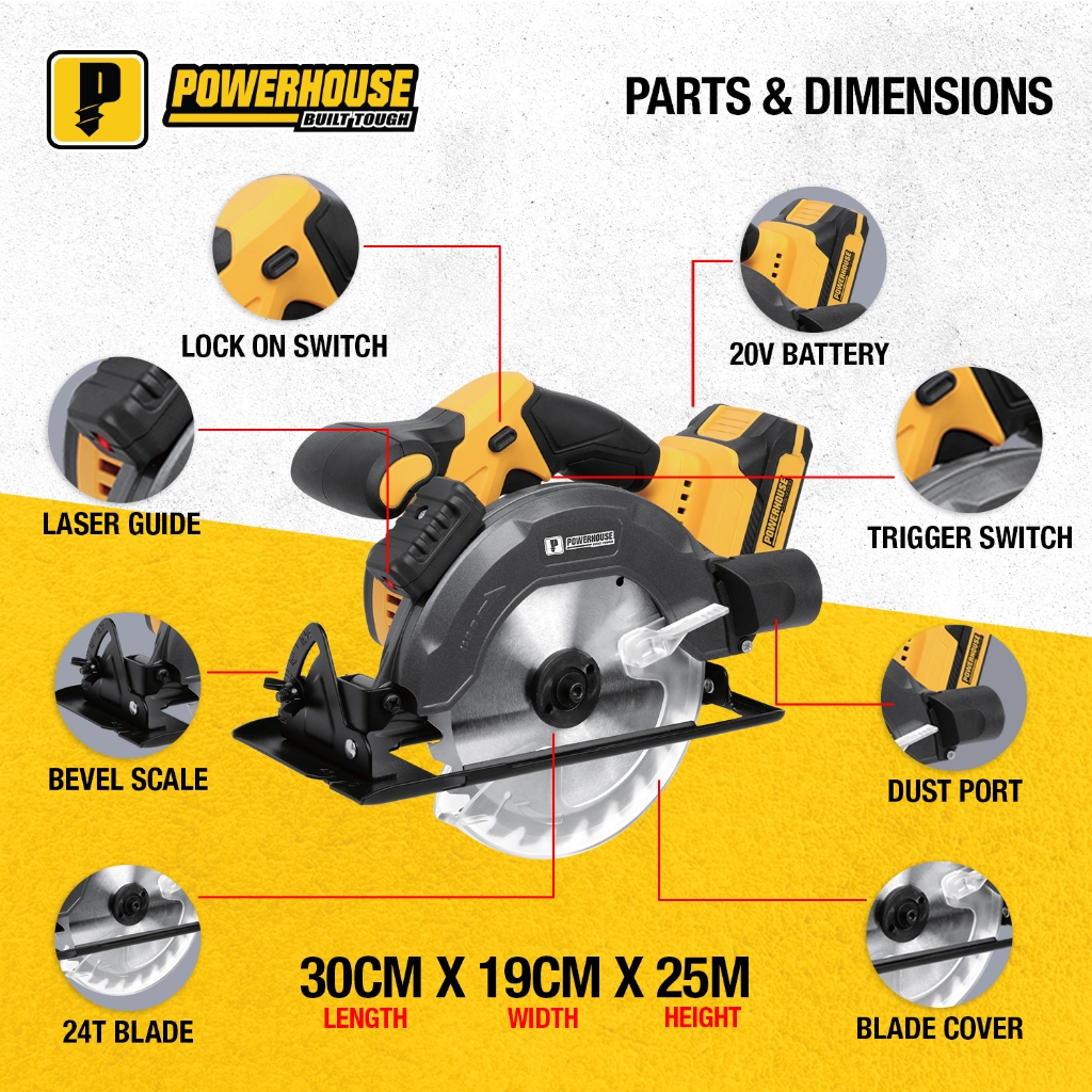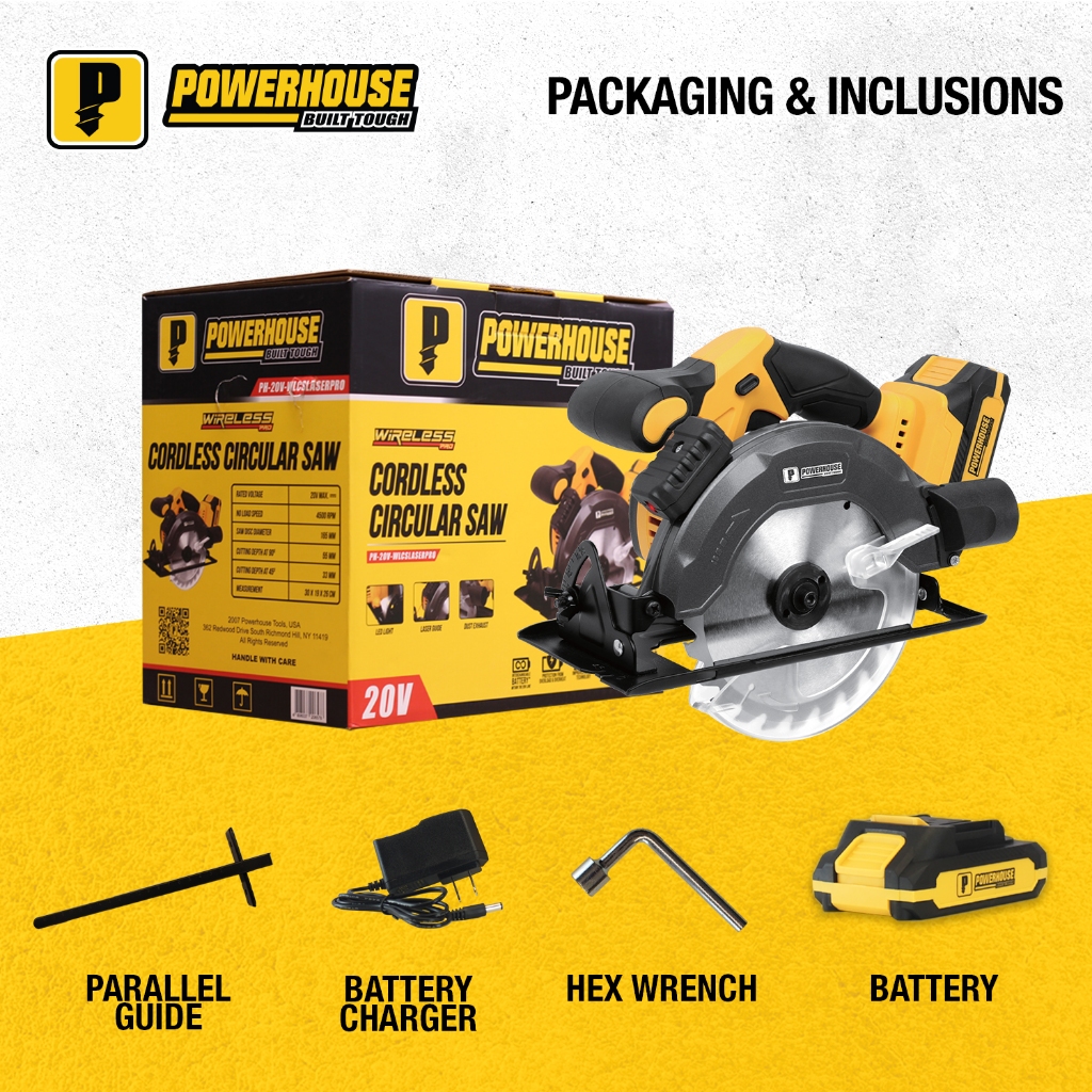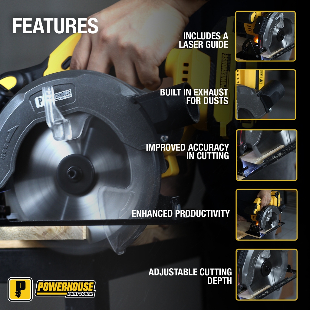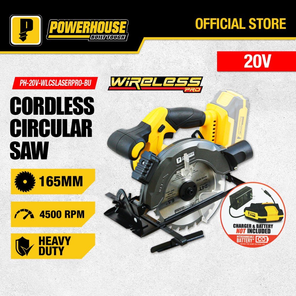 Powerhouse Cordless Circular Saw 4500RPM LASER LINE GUIDE Wood Cutter PH-20V-WLCSLASER PHPT